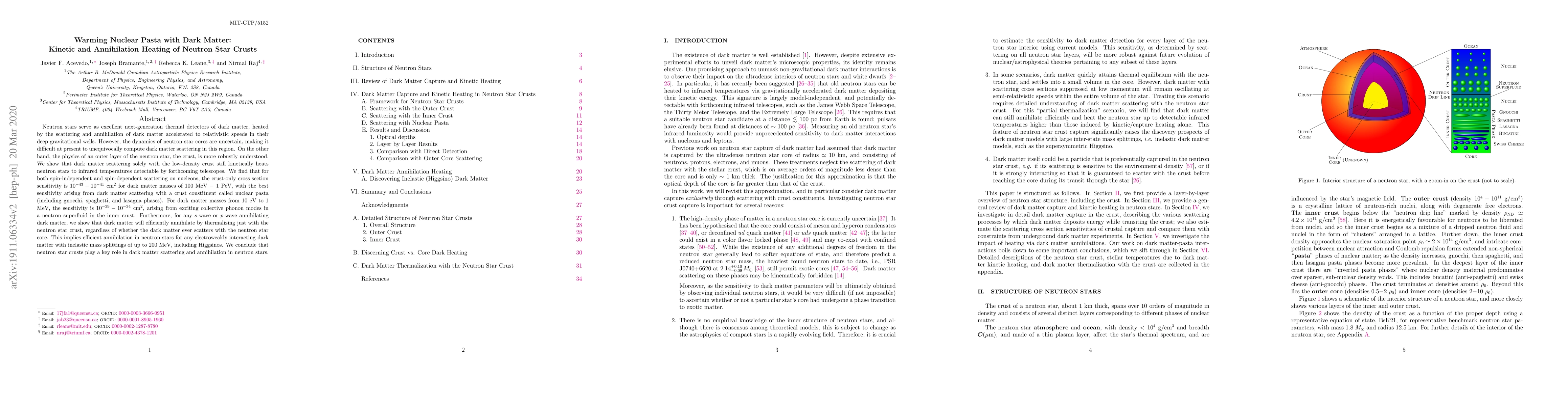 Neutron stars serve as excellent next-generation thermal detectors of dark matter, heated by the scattering and annihilation of dark matter accelerated to relativistic speeds in their deep gravitational wells. However, the dynamics of neutron star cores are uncertain, making it difficult at present to unequivocally compute dark matter scattering in this region. On the other hand, the physics of an outer layer of the neutron star, the crust, is more robustly understood. We show that dark matter scattering solely with the low-density crust still kinetically heats neutron stars to infrared temperatures detectable by forthcoming telescopes. We find that for both spin-independent and spin-dependent scattering on nucleons, the crust-only cross section sensitivity is $10^{-43} - 10^{-41}$~cm$^2$ for dark matter masses of 100 MeV $-$ 1 PeV, with the best sensitivity arising from dark matter scattering with a crust constituent called nuclear pasta (including gnocchi, spaghetti, and lasagna phases). For dark matter masses from 10 eV to 1 MeV, the sensitivity is $10^{-39} - 10^{-34}$~cm$^2$, arising from exciting collective phonon modes in a neutron superfluid in the inner crust. Furthermore, for any $s$-wave or $p$-wave annihilating dark matter, we show that dark matter will efficiently annihilate by thermalizing just with the neutron star crust, regardless of whether the dark matter ever scatters with the neutron star core. This implies efficient annihilation in neutron stars for any electroweakly interacting dark matter with inelastic mass splittings of up to 200 MeV, including Higgsinos. We conclude that neutron star crusts play a key role in dark matter scattering and annihilation in neutron stars.