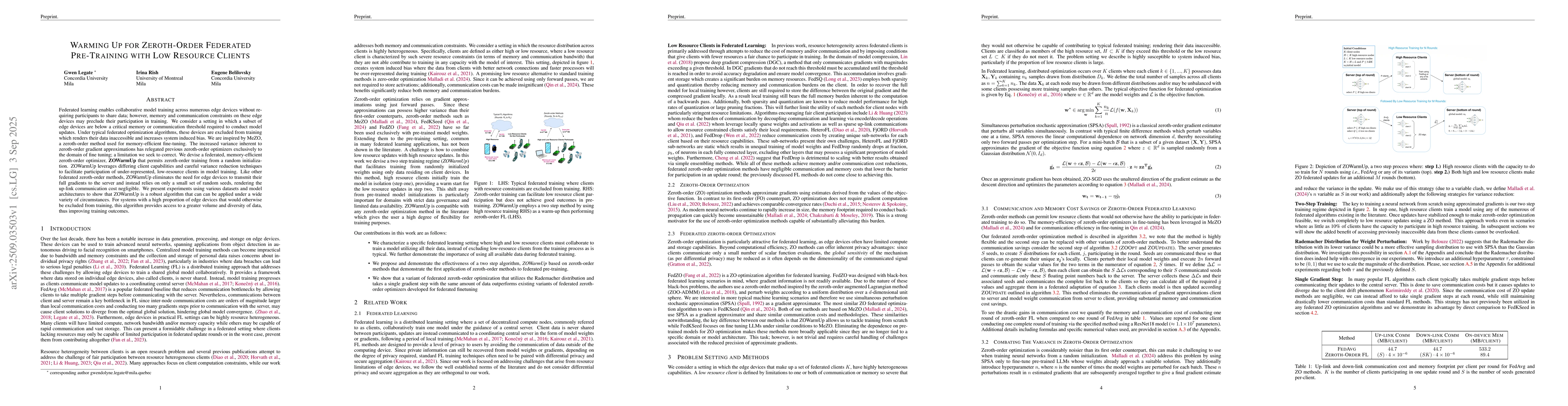 Federated learning enables collaborative model training across numerous edge devices without requiring participants to share data; however, memory and communication constraints on these edge devices may preclude their participation in training. We consider a setting in which a subset of edge devices are below a critical memory or communication threshold required to conduct model updates. Under typical federated optimization algorithms, these devices are excluded from training which renders their data inaccessible and increases system induced bias. We are inspired by MeZO, a zeroth-order method used for memory-efficient fine-tuning. The increased variance inherent to zeroth-order gradient approximations has relegated previous zeroth-order optimizers exclusively to the domain of fine tuning; a limitation we seek to correct. We devise a federated, memory-efficient zeroth-order optimizer, ZOWarmUp that permits zeroth-order training from a random initialization. ZOWarmUp leverages differing client capabilities and careful variance reduction techniques to facilitate participation of under-represented, low-resource clients in model training. Like other federated zeroth-order methods, ZOWarmUp eliminates the need for edge devices to transmit their full gradients to the server and instead relies on only a small set of random seeds, rendering the up-link communication cost negligible. We present experiments using various datasets and model architectures to show that ZOWarmUp is a robust algorithm that can can be applied under a wide variety of circumstances. For systems with a high proportion of edge devices that would otherwise be excluded from training, this algorithm provides access to a greater volume and diversity of data, thus improving training outcomes.