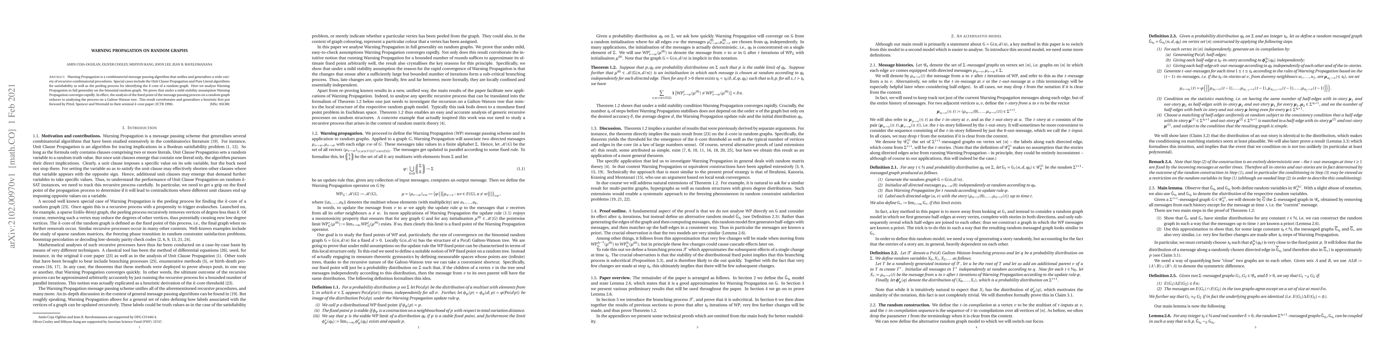 Warning Propagation is a combinatorial message passing algorithm that unifies and generalises a wide variety of recursive combinatorial procedures. Special cases include the Unit Clause Propagation and Pure Literal algorithms for satisfiability as well as the peeling process for identifying the $k$-core of a random graph. Here we analyse Warning Propagation in full generality on the binomial random graph. We prove that under a mild stability assumption Warning Propagation converges rapidly. In effect, the analysis of the fixed point of the message passing process on a random graph reduces to analysing the process on a Galton-Watson tree. This result corroborates and generalises a heuristic first put forward by Pittel, Spencer and Wormald in their seminal $k$-core paper (JCTB 1996).