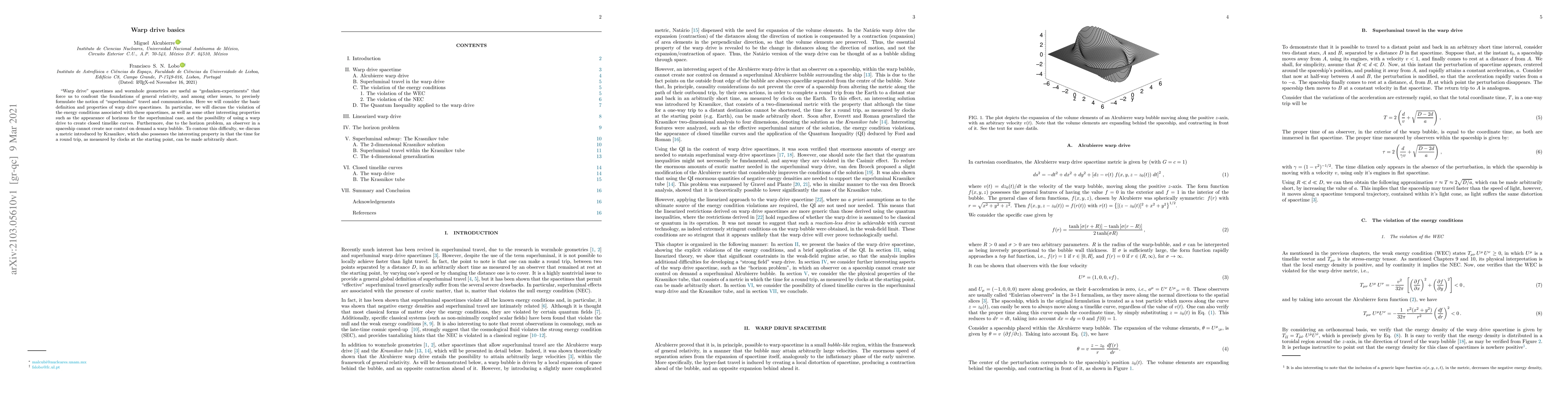This paper explores the foundational aspects of "warp drive" spacetimes, focusing on their violation of energy conditions and the emergence of horizons in superluminal travel scenarios. It also discusses the creation of closed timelike curves and the limitations in controlling warp bubbles, proposing a Krasnov metric to address these issues.