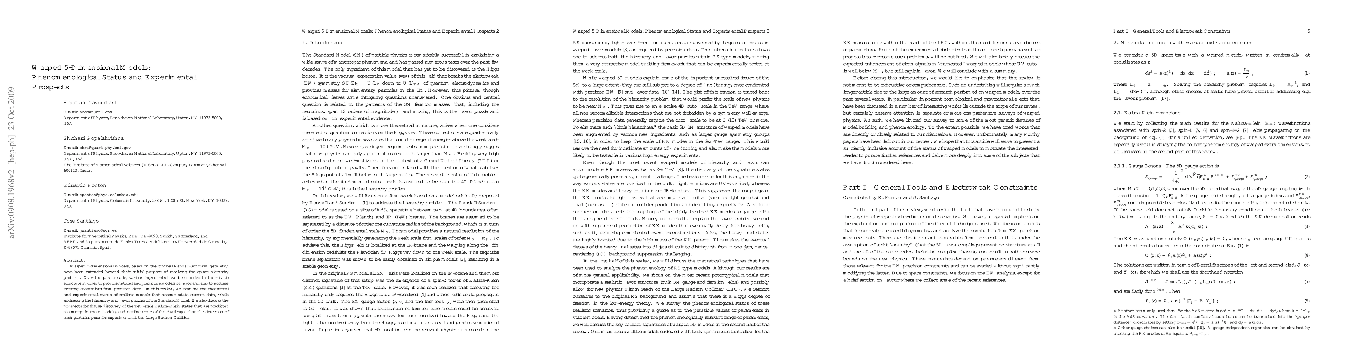 This review discusses how warped 5-dimensional models, originally designed to solve the hierarchy problem, have been extended to explain flavor physics and align with experimental data. It also explores the potential for discovering new particles predicted by these models at the Large Hadron Collider.