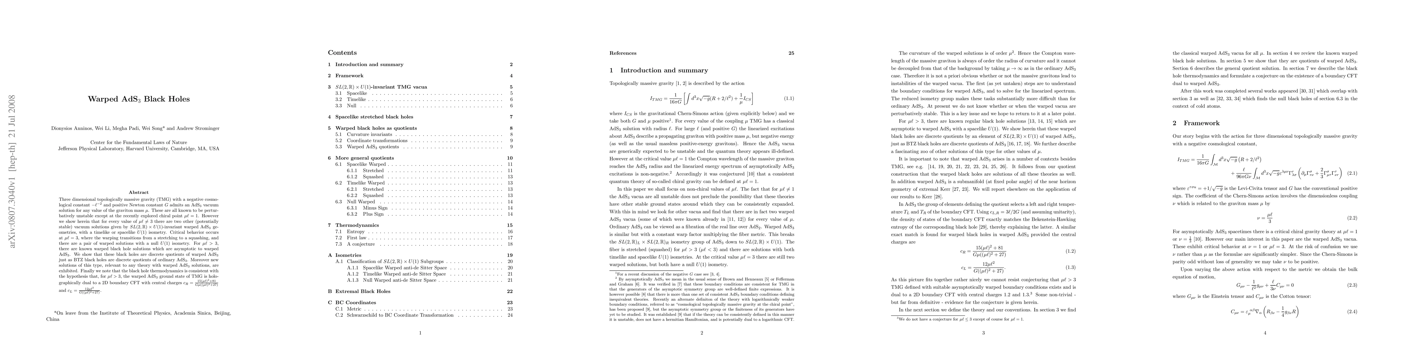 Three dimensional topologically massive gravity (TMG) with a negative cosmological constant -\ell^{-2} and positive Newton constant G admits an AdS_3 vacuum solution for any value of the graviton mass \mu. These are all known to be perturbatively unstable except at the recently explored chiral point \mu\ell=1. However we show herein that for every value of \mu\ell< 3 there are two other (potentially stable) vacuum solutions given by SL(2,R)x U(1)-invariant warped AdS_3 geometries, with a timelike or spacelike U(1) isometry. Critical behavior occurs at \mu\ell=3, where the warping transitions from a stretching to a squashing, and there are a pair of warped solutions with a null U(1) isometry. For \mu\ell>3, there are known warped black hole solutions which are asymptotic to warped AdS_3. We show that these black holes are discrete quotients of warped AdS_3 just as BTZ black holes are discrete quotients of ordinary AdS_3. Moreover new solutions of this type, relevant to any theory with warped AdS_3 solutions, are exhibited. Finally we note that the black hole thermodynamics is consistent with the hypothesis that, for \mu\ell>3, the warped AdS_3 ground state of TMG is holographically dual to a 2D boundary CFT with central charges c_R={15(\mu\ell)^2+81\over G\mu((\mu\ell)^2+27)} and c_L={12 \mu\ell^2\over G((\mu\ell)^2+27)}.