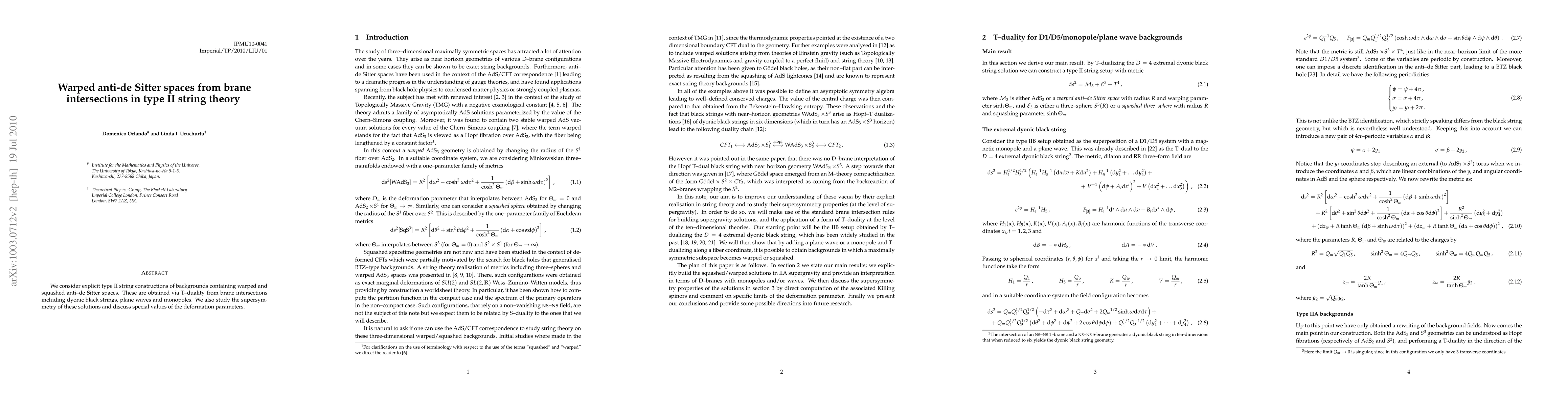 This paper constructs type II string theory backgrounds with warped anti-de Sitter spaces through brane intersections, utilizing T duality, and examines their supersymmetry and specific deformation parameter values. The configurations include dyonic black strings, plane waves, and monopoles.