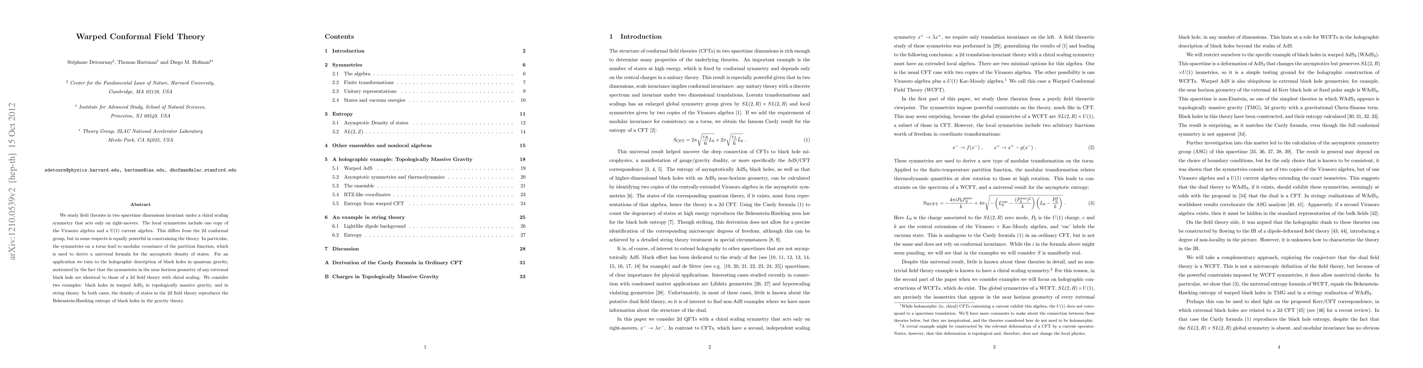We study field theories in two spacetime dimensions invariant under a chiral scaling symmetry that acts only on right-movers. The local symmetries include one copy of the Virasoro algebra and a U(1) current algebra. This differs from the 2d conformal group, but in some respects is equally powerful in constraining the theory. In particular, the symmetries on a torus lead to modular covariance of the partition function, which is used to derive a universal formula for the asymptotic density of states. For an application we turn to the holographic description of black holes in quantum gravity, motivated by the fact that the symmetries in the near horizon geometry of any extremal black hole are identical to those of a 2d field theory with chiral scaling. We consider two examples: black holes in warped AdS_3 in topologically massive gravity, and in string theory. In both cases, the density of states in the 2d field theory reproduces the Bekenstein-Hawking entropy of black holes in the gravity theory.