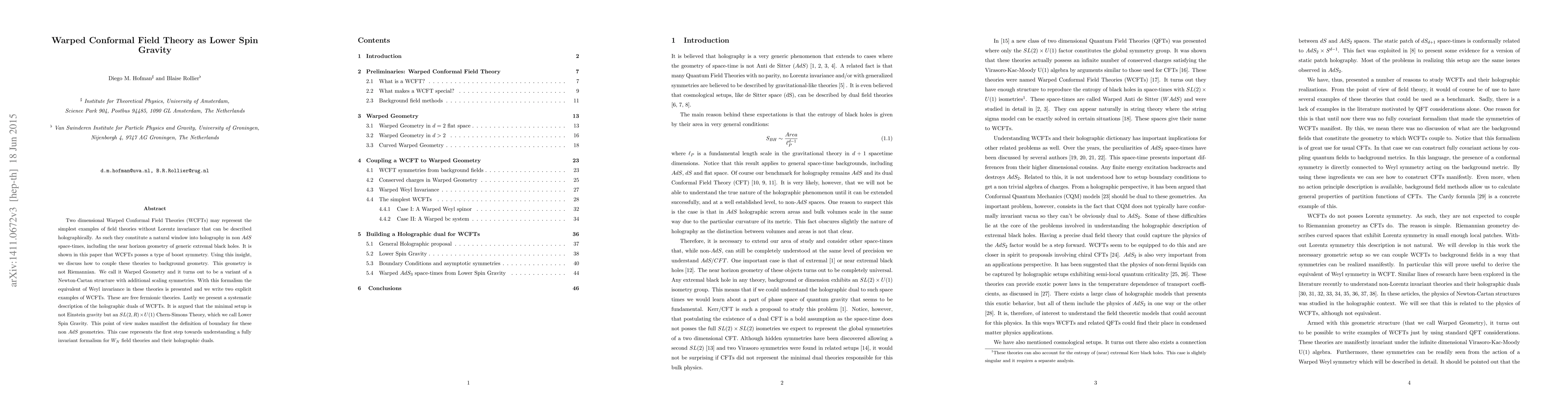 This paper shows that Warped Conformal Field Theories can represent non-Lorentz invariant field theories with holographic duals, leading to a new understanding of Lower Spin Gravity.