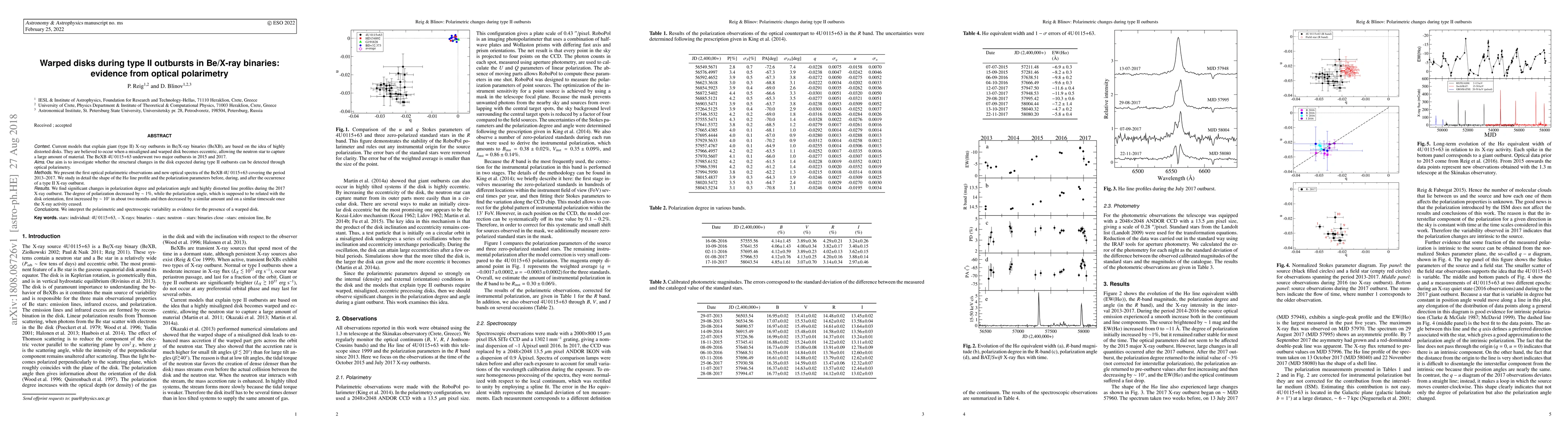 This study investigates the optical polarimetry of the Be/X-ray binary 4U 0115+63 during type II outbursts, finding significant changes in polarization and line profiles indicative of a warped disk. The results provide evidence for the structural changes in the disk during these outbursts.