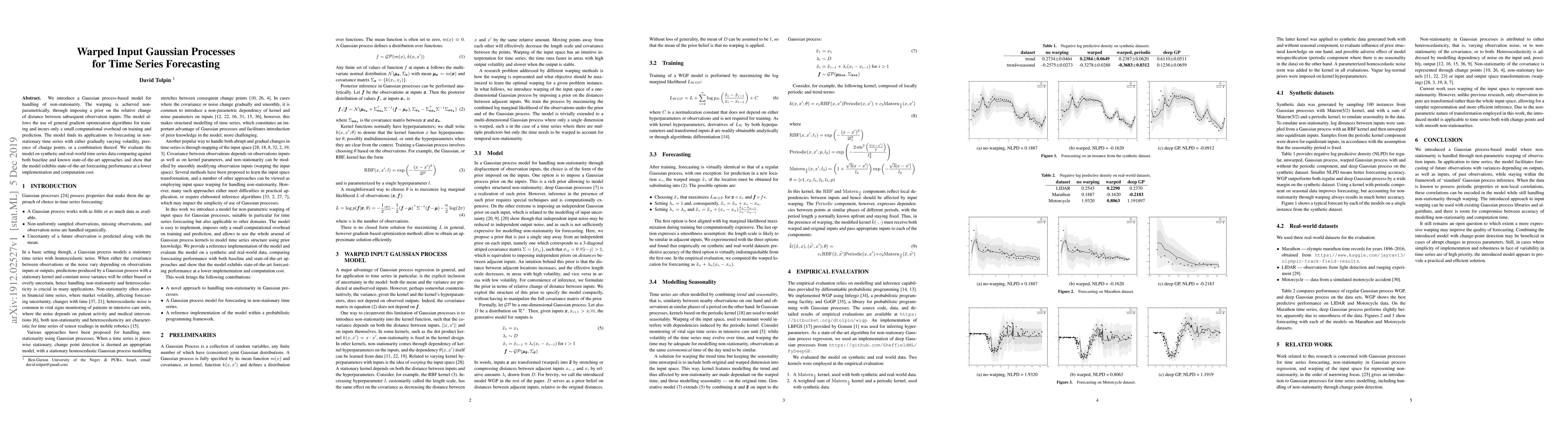 This paper proposes a Gaussian process model with warping for time series forecasting that handles non-stationarity by imposing a prior on the relative change of distances between inputs. The model demonstrates state-of-the-art performance with lower computational costs compared to baselines.