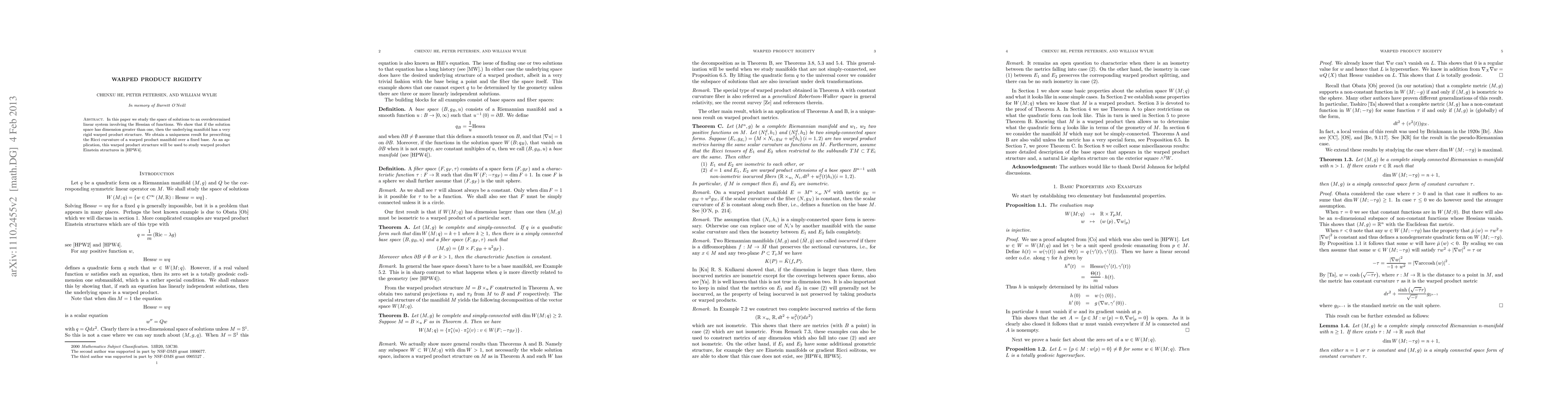 In this paper we study the space of solutions to an overdetermined linear system involving the Hessian of functions. We show that if the solution space has dimension greater than one, then the underlying manifold has a very rigid warped product structure. We obtain a uniqueness result for prescribing the Ricci curvature of a warped product manifold over a fixed base. As an application, this warped product structure will be used to study warped product Einstein structures in "Uniqueness of warped product Einstein metrics and applications".