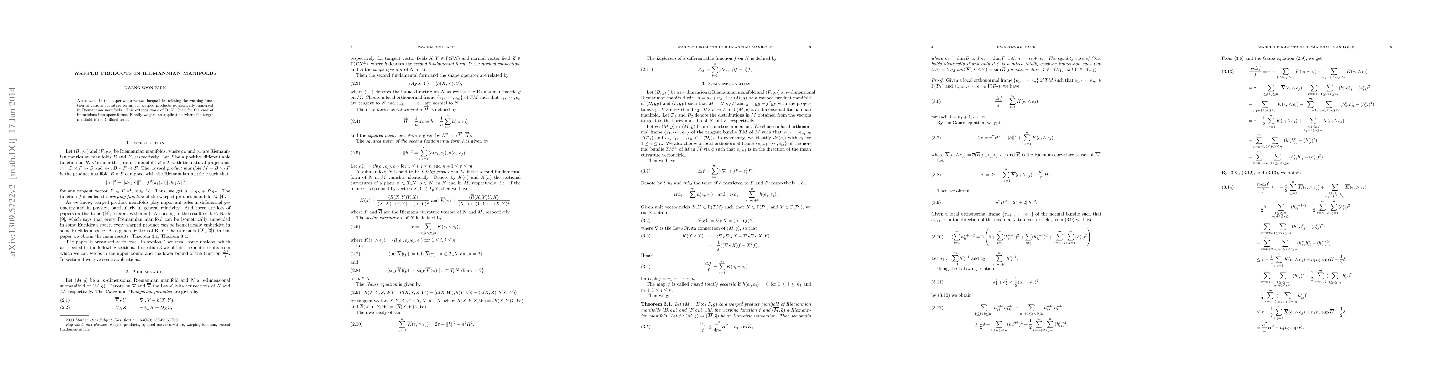 This paper establishes new inequalities connecting the warping function to curvature terms for warped products in Riemannian manifolds, extending previous results by B. Y. Chen for immersions into space forms. An application is provided for the case where the target manifold is the Clifford torus.