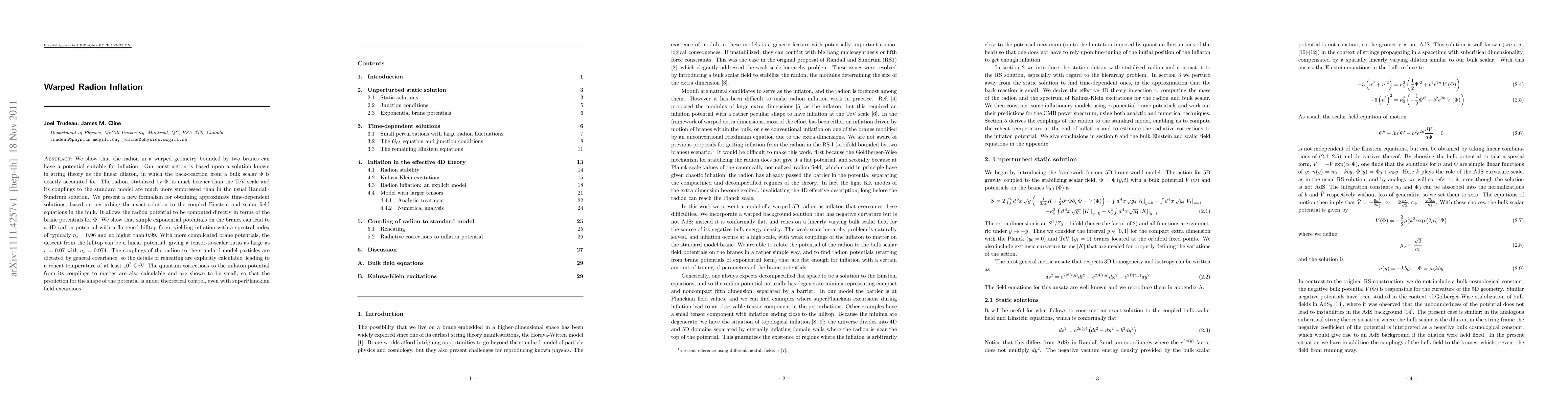 This paper explores radion inflation in a warped geometry with two branes, showing that a potential suitable for inflation arises from a linear dilaton solution in string theory. The radion's potential, derived from brane potentials, can yield a flattened hilltop for inflation, with a spectral index typically around 0.96-0.99.