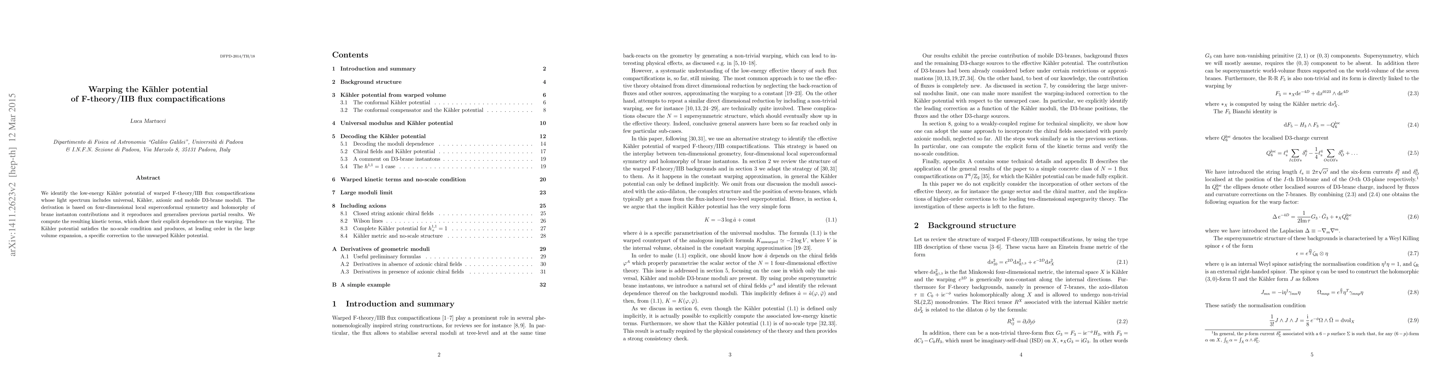 We identify the low-energy K\"ahler potential of warped F-theory/IIB flux compactifications whose light spectrum includes universal, K\"ahler, axionic and mobile D3-brane moduli. The derivation is based on four-dimensional local superconformal symmetry and holomorphy of brane instanton contributions and it reproduces and generalises previous partial results. We compute the resulting kinetic terms, which show their explicit dependence on the warping. The K\"ahler potential satisfies the no-scale condition and produces, at leading order in the large volume expansion, a specific correction to the unwarped K\"ahler potential.