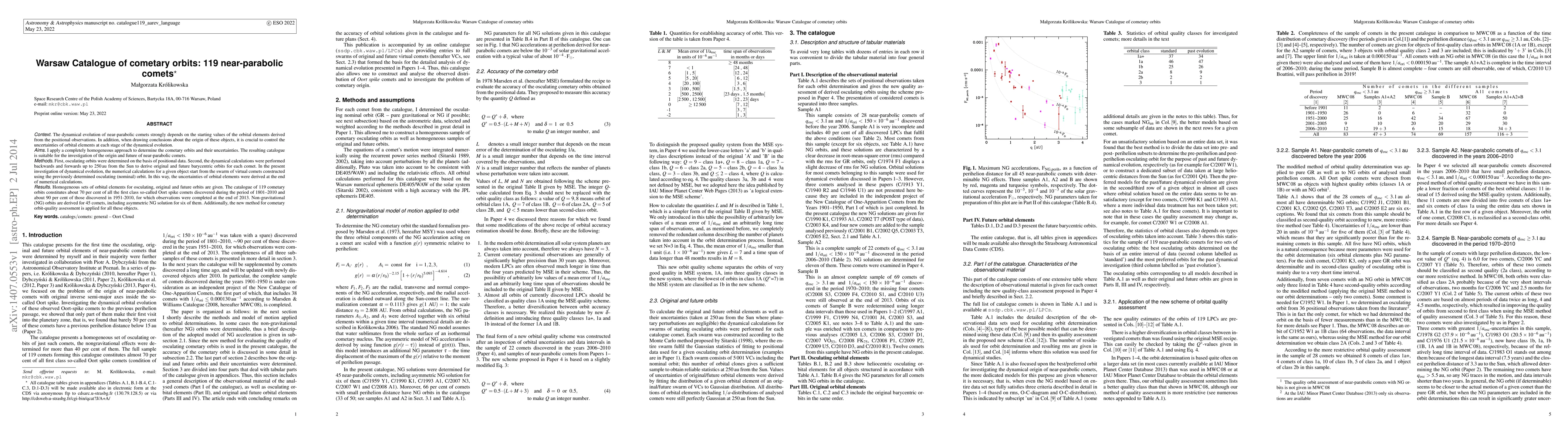 A study of 119 near-parabolic comets provides new insights into their orbits and origins, offering a comprehensive catalogue for further research and improving the understanding of comet dynamics.