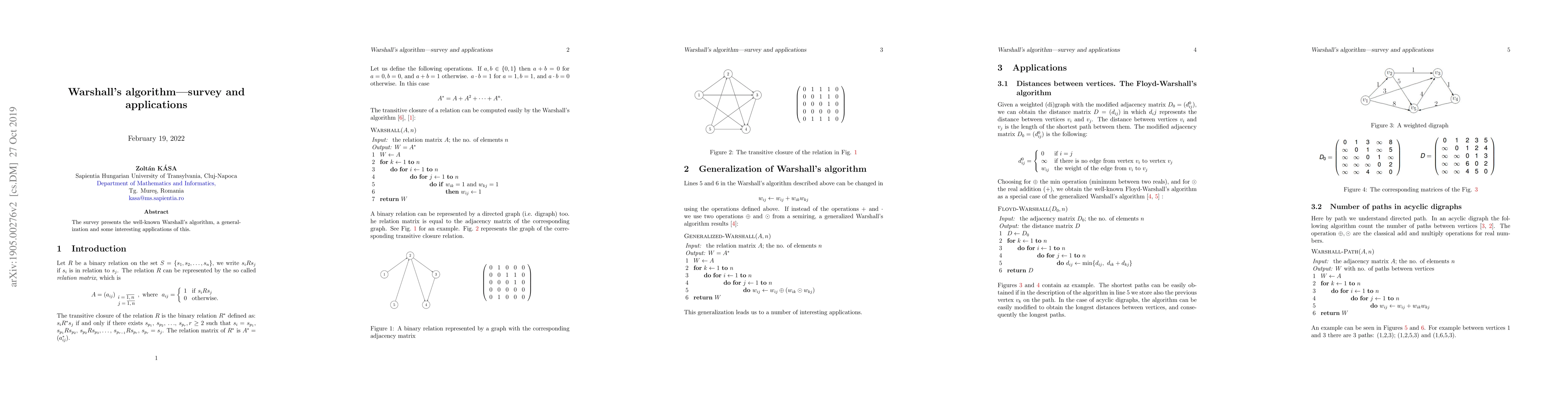The survey presents the well-known Warshall's algorithm, a generalization and some interesting applications of this.