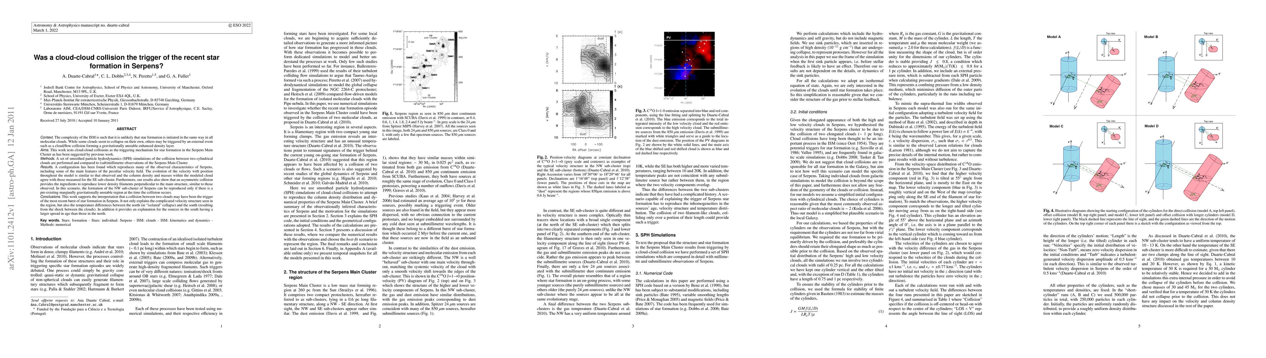 This study investigates whether a cloud-cloud collision triggered recent star formation in the Serpens Main Cluster using SPH simulations and observational data. The findings suggest that such a collision could have initiated the star formation, explaining the observed velocity field, density structures, and temperature differences.