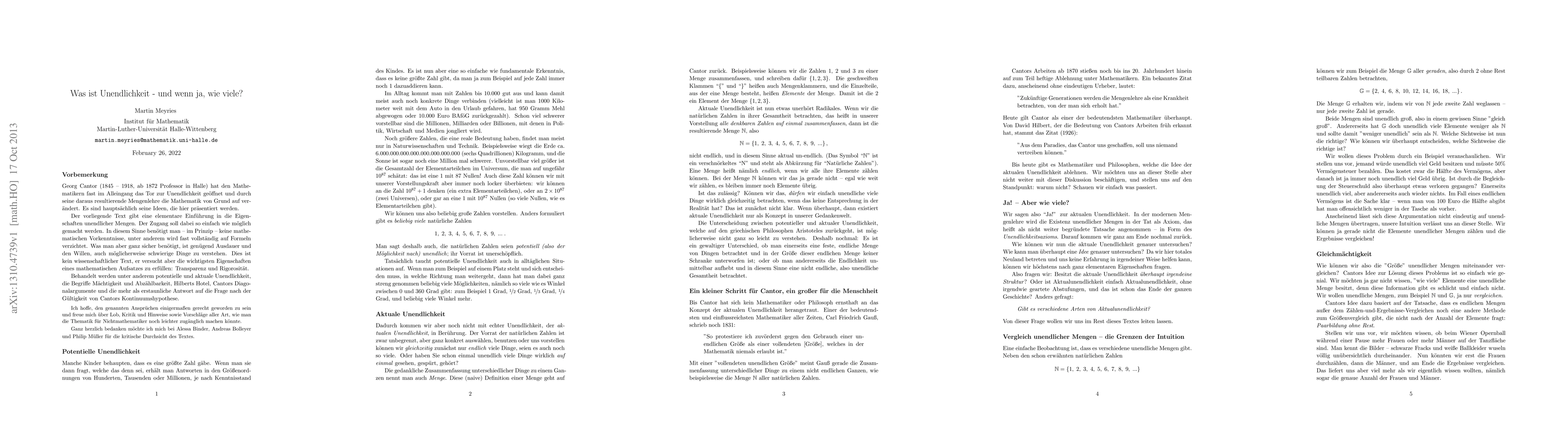This article, written in German language, gives a very elementary introduction to infinite sets. It is meant for interested non-mathematicians.