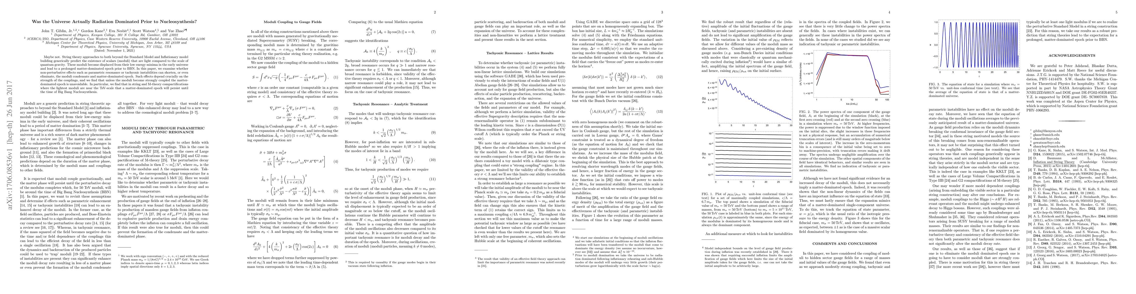 Maybe not. String theory approaches to both beyond the Standard Model and Inflationary model building generically predict the existence of scalars (moduli) that are light compared to the scale of quantum gravity. These moduli become displaced from their low energy minima in the early universe and lead to a prolonged matter-dominated epoch prior to BBN. In this paper, we examine whether non-perturbative effects such as parametric resonance or tachyonic instabilities can shorten, or even eliminate, the moduli condensate and matter-dominated epoch. Such effects depend crucially on the strength of the couplings, and we find that unless the moduli become strongly coupled the matter-dominated epoch is unavoidable. In particular, we find that in string and M-theory compactifications where the lightest moduli are near the TeV-scale that a matter-dominated epoch will persist until the time of Big Bang Nucleosynthesis.