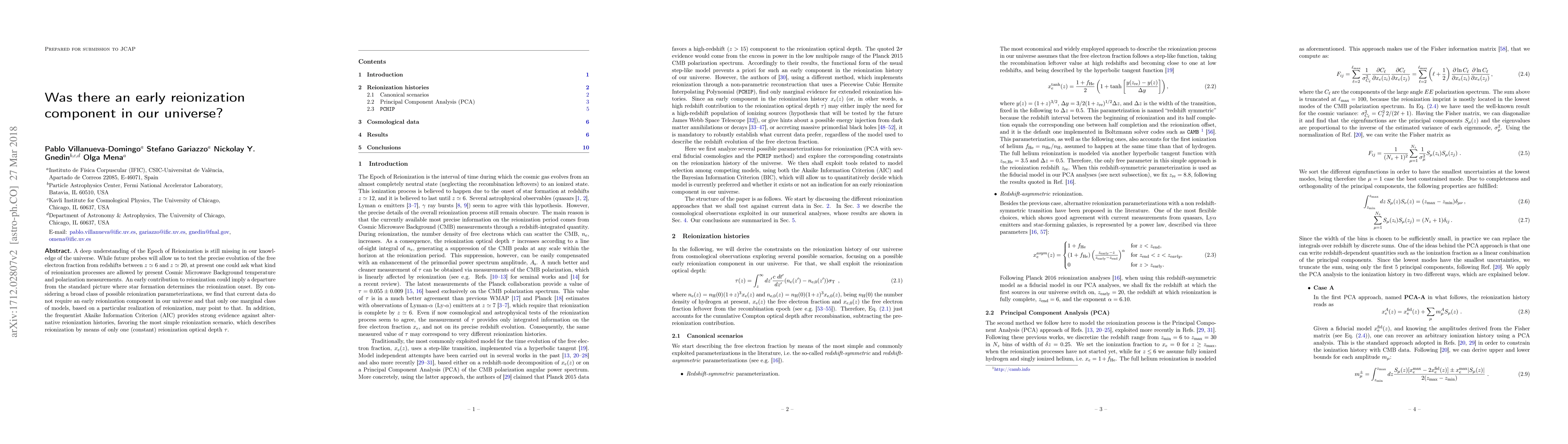 This paper investigates whether early reionization occurred in the universe, finding that current Cosmic Microwave Background data do not necessitate an early reionization component. The analysis favors the simplest reionization scenario with a single constant optical depth $\tau$.
