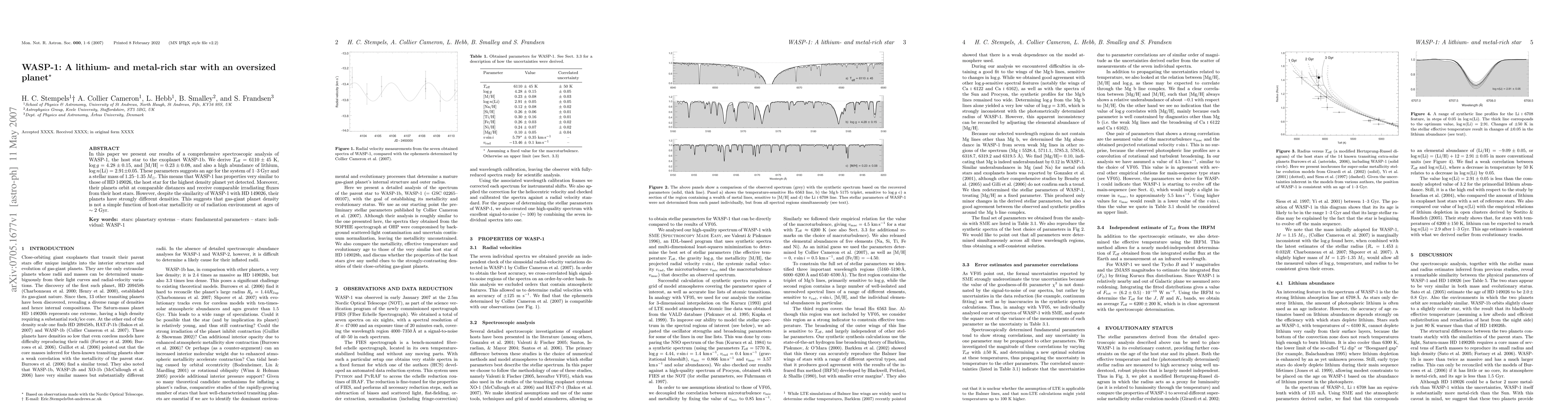 In this paper we present our results of a comprehensive spectroscopicanalysis of WASP-1, the host star to the exoplanet WASP-1b. We derive T_eff = 6110 +/- 45 K, log g = 4.28 +/- 0.15, and [M/H] = 0.23 +/- 0.08, and also a high abundance of lithium, log n(Li) = 2.91 +/- 0.05. These parameters suggests an age for the system of 1-3 Gyr and a stellar mass of 1.25-1.35 M_sun. This means that WASP-1 has properties very similar to those of HD 149026, the host star for the highest density planet yet detected. Moreover, their planets orbit at comparable distances and receive comparable irradiating fluxes from their host stars. However, despite the similarity of WASP-1 with HD 149026, their planets have strongly different densities. This suggests that gas-giant planet density is not a simple function of host-star metallicity or of radiation environment at ages of ~2 Gyr.