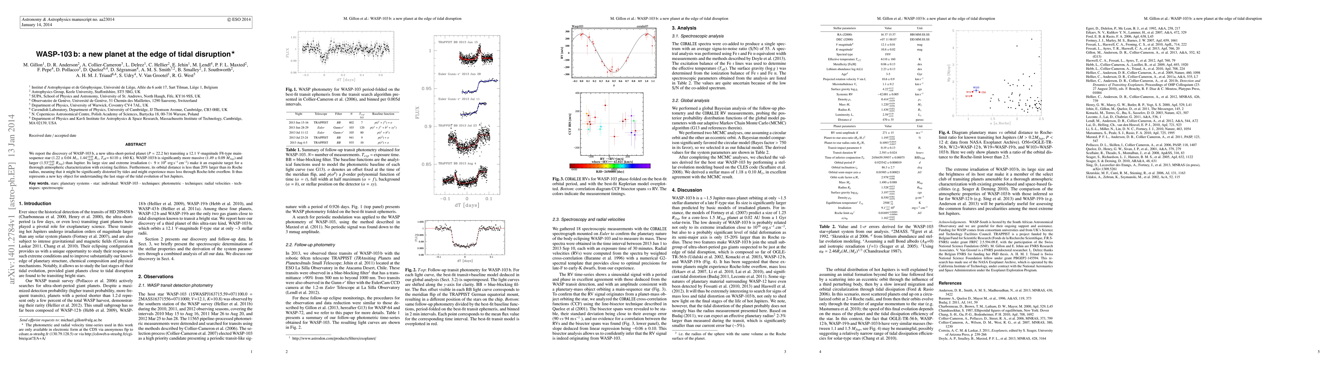We report the discovery of WASP-103b, a new ultra-short-period planet (P=22.2 hr) transiting a 12.1 V-magnitude F8-type main-sequence star (1.22+-0.04 Msun, 1.44-0.03+0.05 Rsun, Teff = 6110+-160 K). WASP-103b is significantly more massive (1.49+-0.09 Mjup) and larger (1.53-0.07+0.05 Rjup) than Jupiter. Its large size and extreme irradiation (around 9 10^9 erg/s/cm^2) make it an exquisite target for a thorough atmospheric characterization with existing facilities. Furthermore, its orbital distance is less than 20% larger than its Roche radius, meaning that it might be significantly distorted by tides and might experience mass loss through Roche-lobe overflow. It thus represents a new key object for understanding the last stage of the tidal evolution of hot Jupiters.