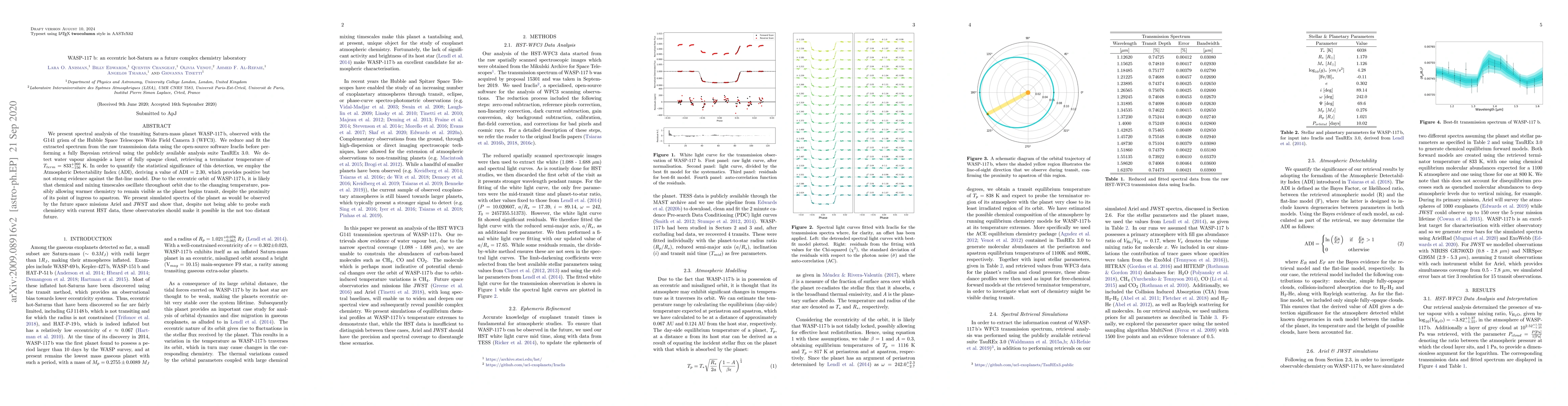 We present spectral analysis of the transiting Saturn-mass planet WASP-117b, observed with the G141 grism of Wide Field Camera 3 (WFC3) on the Hubble Space Telescope. We reduce and fit the extracted spectrum from the raw transmission data using the open-source software Iraclis before performing a fully Bayesian retrieval using the publicly available analysis suite TauREx 3.0. We detect water vapour alongside a layer of fully opaque cloud, retrieving a terminator temperature of 833 K. In order to quantify the statistical significance of this detection, we employ the Atmospheric Detectability Index (ADI), deriving a value of 2.30, which provides positive but not strong evidence against the flatline model. Due to the eccentric orbit of WASP-117b, it is likely that chemical and mixing timescales oscillate throughout orbit due to the changing temperature, possibly allowing warmer chemistry to remain visible as the planet begins transit, despite the proximity of its point of ingress to apastron. We present simulated spectra of the planet as would be observed by the future space missions Ariel and JWST and show that, despite not being able to probe such chemistry with current HST data, these observatories should make it possible in the not too distant future.