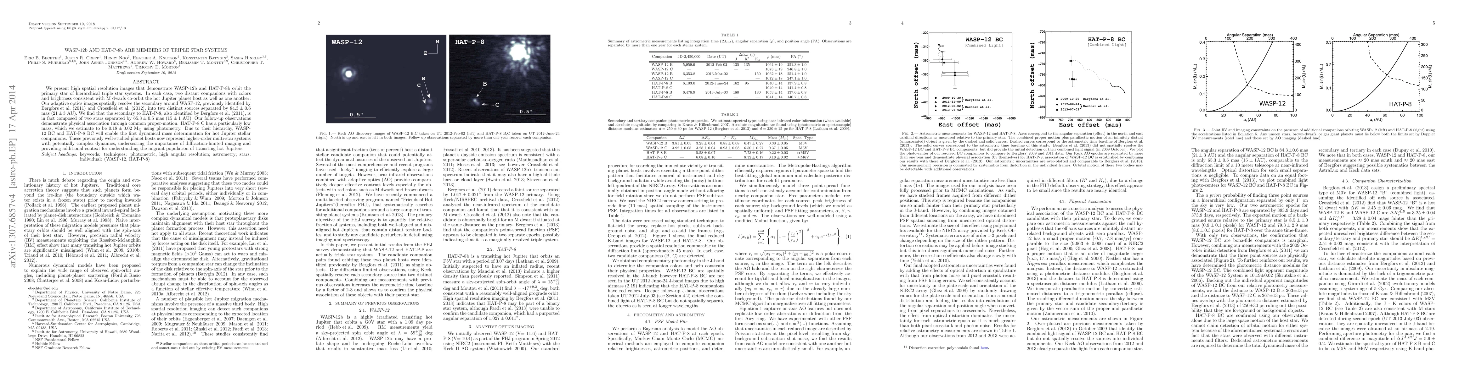 We present high spatial resolution images that demonstrate the hot Jupiters WASP-12b and HAT-P-8b orbit the primary star of hierarchical triple star systems. In each case, two distant companions with colors and brightness consistent with M dwarfs co-orbit the planet host as well as one another. Our adaptive optics images spatially resolve the secondary around WASP-12, previously identified by Bergfors et al. 2011 and Crossfield et al. 2012, into two distinct sources separated by 84.3+/-0.6 mas (21 +/- 3 AU). We find that the secondary to HAT-P-8, also identified by Bergfors et al. 2011, is in fact composed of two stars separated by 65.3+/-0.5 mas (15+/-1 AU). Our follow-up observations demonstrate physical association through common proper-motion. HAT-P-8 C has a particularly low mass, which we estimate to be 0.18+/-0.02Msun using photometry. Due to their hierarchy, WASP-12 BC and HAT-P-8 BC will enable the first dynamical mass determination for hot Jupiter stellar companions. These previously well-studied planet hosts now represent higher-order multi-star systems with potentially complex dynamics, underscoring the importance of diffraction-limited imaging and providing additional context for understanding the migrant population of transiting hot Jupiters.