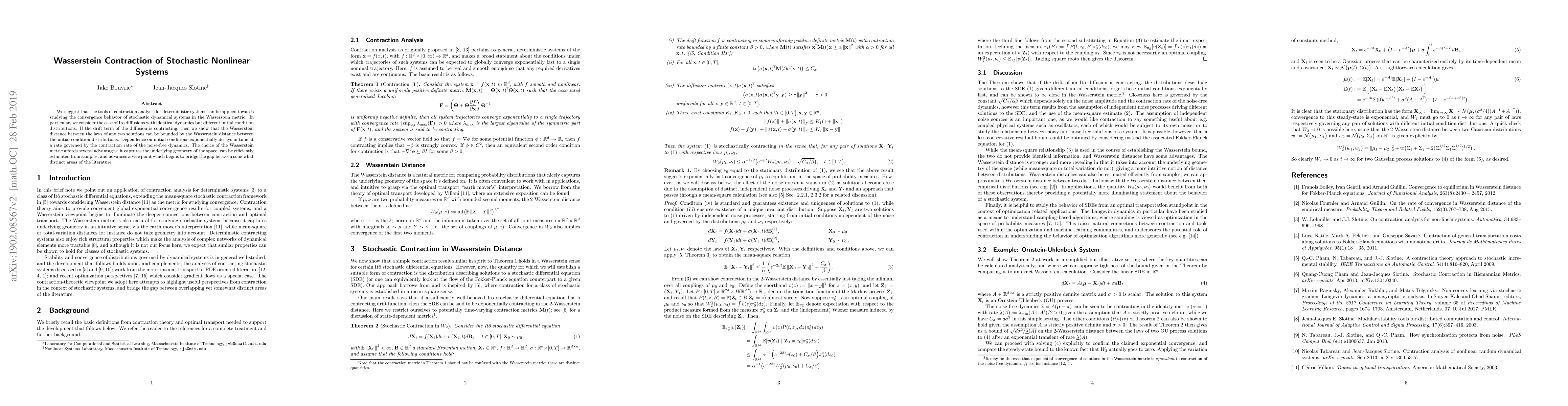 A research paper applies tools from deterministic system contraction to study convergence behavior of stochastic systems in the Wasserstein metric, finding that the distance between solutions' laws is bounded by their initial condition distributions.