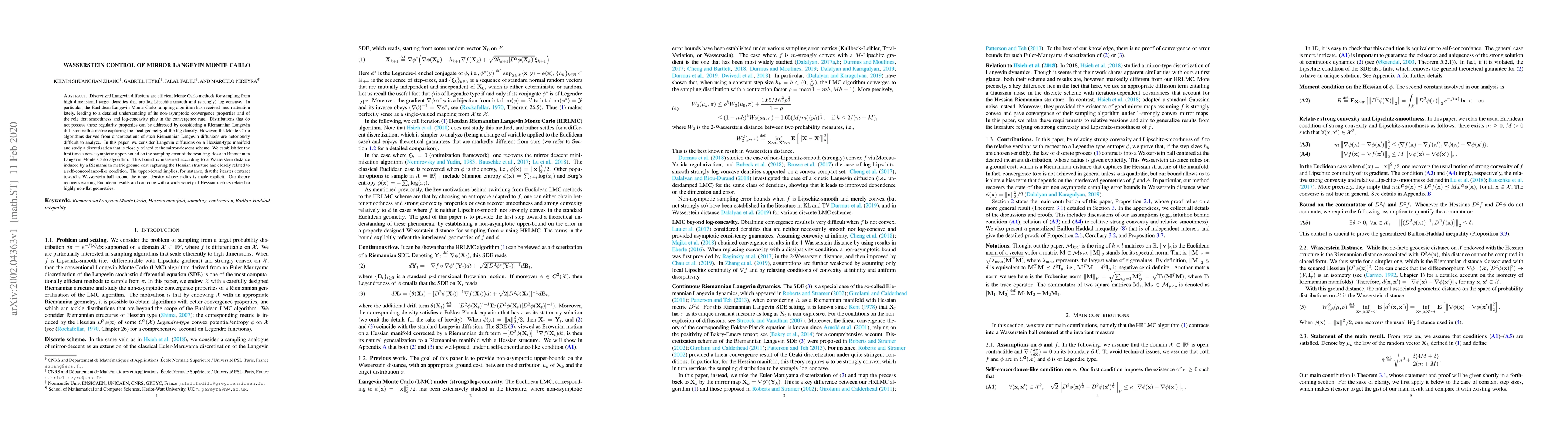Discretized Langevin diffusions are efficient Monte Carlo methods for sampling from high dimensional target densities that are log-Lipschitz-smooth and (strongly) log-concave. In particular, the Euclidean Langevin Monte Carlo sampling algorithm has received much attention lately, leading to a detailed understanding of its non-asymptotic convergence properties and of the role that smoothness and log-concavity play in the convergence rate. Distributions that do not possess these regularity properties can be addressed by considering a Riemannian Langevin diffusion with a metric capturing the local geometry of the log-density. However, the Monte Carlo algorithms derived from discretizations of such Riemannian Langevin diffusions are notoriously difficult to analyze. In this paper, we consider Langevin diffusions on a Hessian-type manifold and study a discretization that is closely related to the mirror-descent scheme. We establish for the first time a non-asymptotic upper-bound on the sampling error of the resulting Hessian Riemannian Langevin Monte Carlo algorithm. This bound is measured according to a Wasserstein distance induced by a Riemannian metric ground cost capturing the Hessian structure and closely related to a self-concordance-like condition. The upper-bound implies, for instance, that the iterates contract toward a Wasserstein ball around the target density whose radius is made explicit. Our theory recovers existing Euclidean results and can cope with a wide variety of Hessian metrics related to highly non-flat geometries.