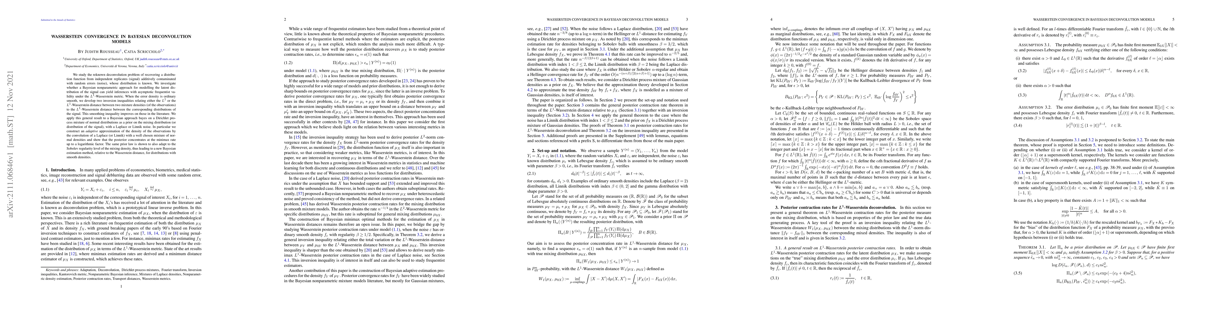 This paper explores Bayesian nonparametric methods for deconvolution problems, focusing on the convergence of posterior distributions under the $L^1$-Wasserstein metric. It develops improved inversion inequalities and demonstrates that a Bayesian approach using a Dirichlet process mixture of normal distributions achieves adaptive estimation at the minimax rate.
