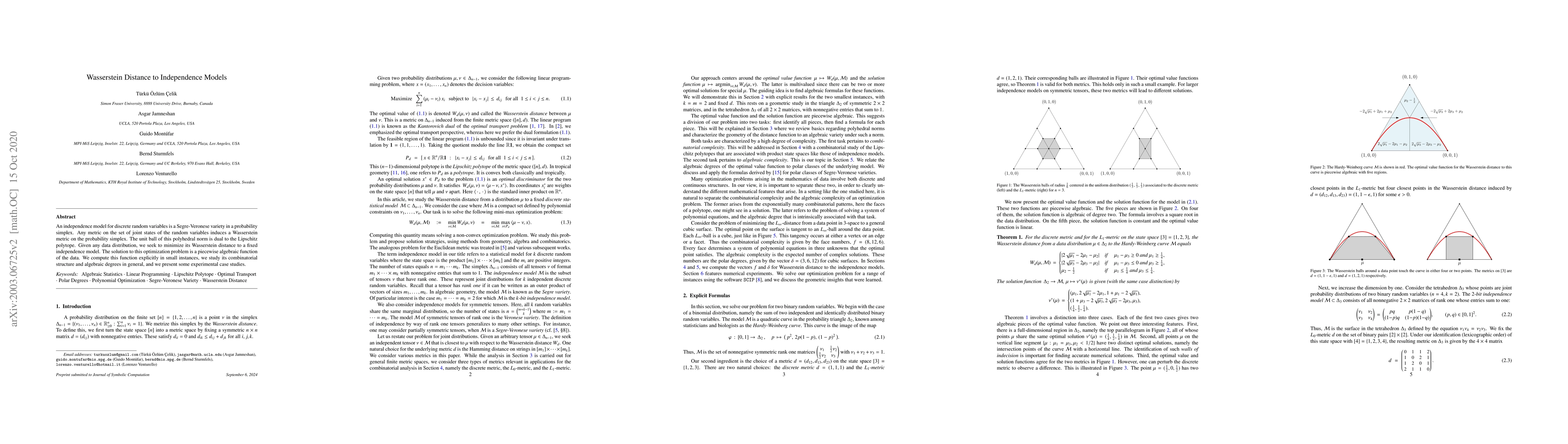 An independence model for discrete random variables is a Segre-Veronese variety in a probability simplex. Any metric on the set of joint states of the random variables induces a Wasserstein metric on the probability simplex. The unit ball of this polyhedral norm is dual to the Lipschitz polytope. Given any data distribution, we seek to minimize its Wasserstein distance to a fixed independence model. The solution to this optimization problem is a piecewise algebraic function of the data. We compute this function explicitly in small instances, we examine its combinatorial structure and algebraic degrees in the general case, and we present some experimental case studies.