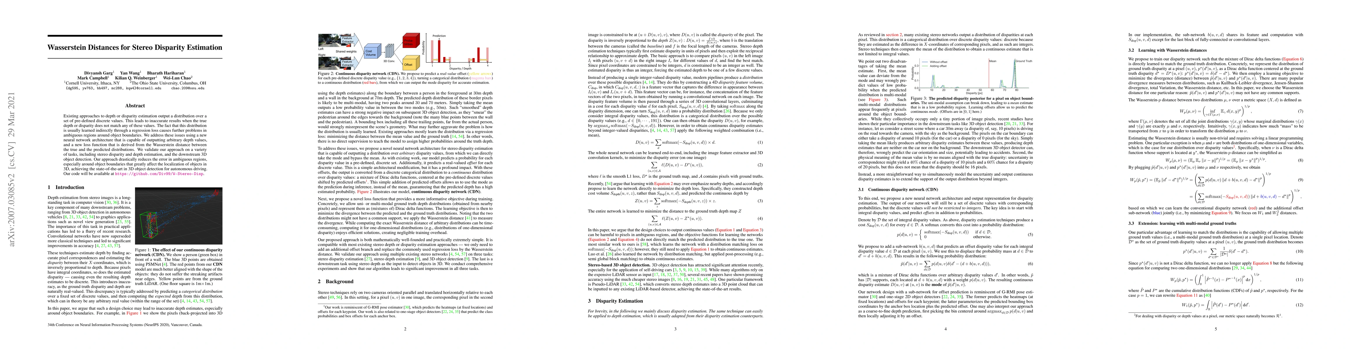 This paper proposes a novel neural network architecture and loss function based on Wasserstein distances to improve stereo disparity estimation, enabling the output of arbitrary depth values and reducing errors in ambiguous regions. The method achieves state-of-the-art results in 3D object detection for autonomous driving.