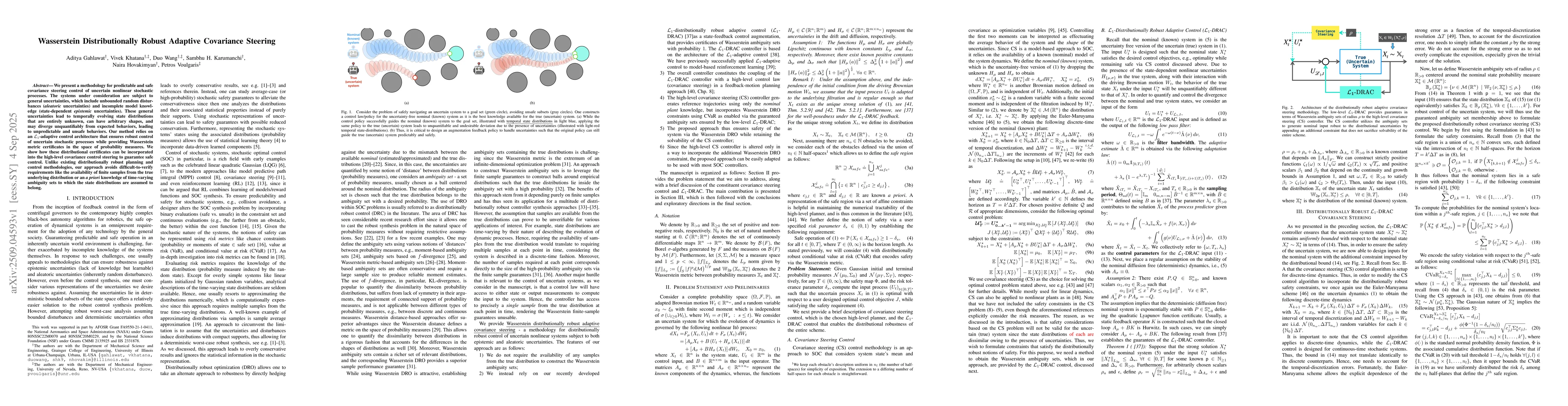 We present a methodology for predictable and safe covariance steering control of uncertain nonlinear stochastic processes. The systems under consideration are subject to general uncertainties, which include unbounded random disturbances (aleatoric uncertainties) and incomplete model knowledge (state-dependent epistemic uncertainties). These general uncertainties lead to temporally evolving state distributions that are entirely unknown, can have arbitrary shapes, and may diverge unquantifiably from expected behaviors, leading to unpredictable and unsafe behaviors. Our method relies on an $\mathcal{L}_1$-adaptive control architecture that ensures robust control of uncertain stochastic processes while providing Wasserstein metric certificates in the space of probability measures. We show how these distributional certificates can be incorporated into the high-level covariance control steering to guarantee safe control. Unlike existing distributionally robust planning and control methodologies, our approach avoids difficult-to-verify requirements like the availability of finite samples from the true underlying distribution or an a priori knowledge of time-varying ambiguity sets to which the state distributions are assumed to belong.