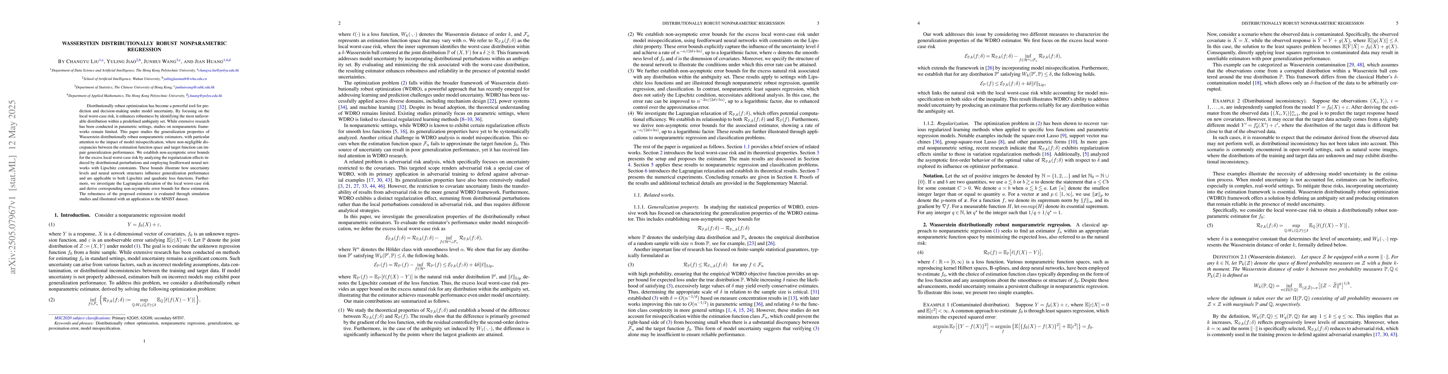 This research paper explores Wasserstein distributionally robust nonparametric regression, establishing error bounds for excess local worst-case risk and investigating the impact of model misspecification on generalization performance.