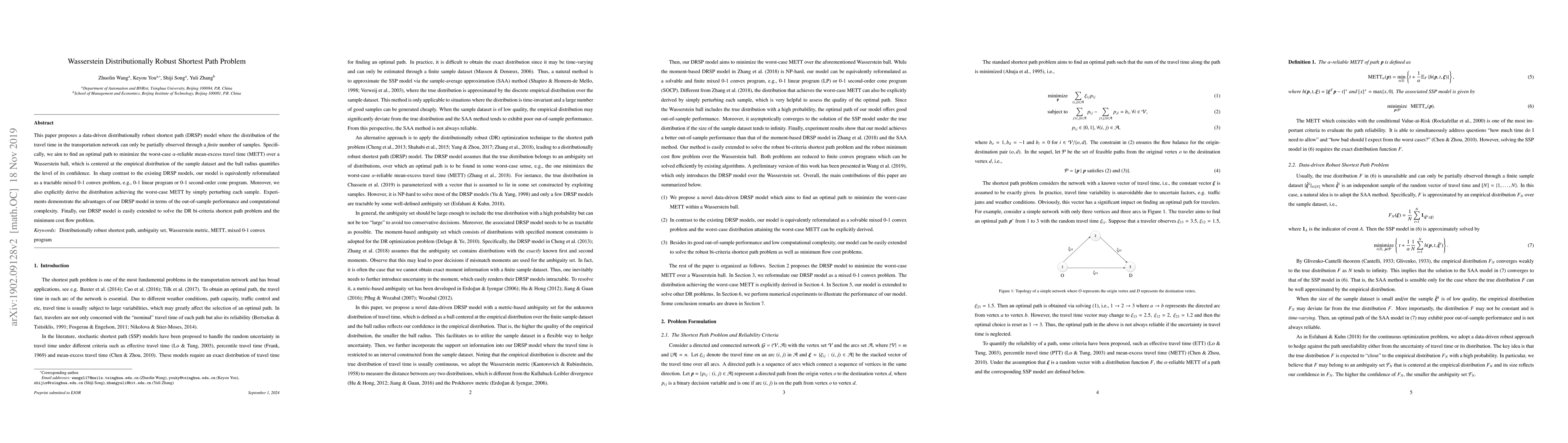 This paper introduces a data-driven distributionally robust shortest path model that minimizes worst-case travel time under uncertainty, reformulated as a tractable mixed 0-1 convex problem. Experiments show improved out-of-sample performance and computational efficiency compared to existing models.
