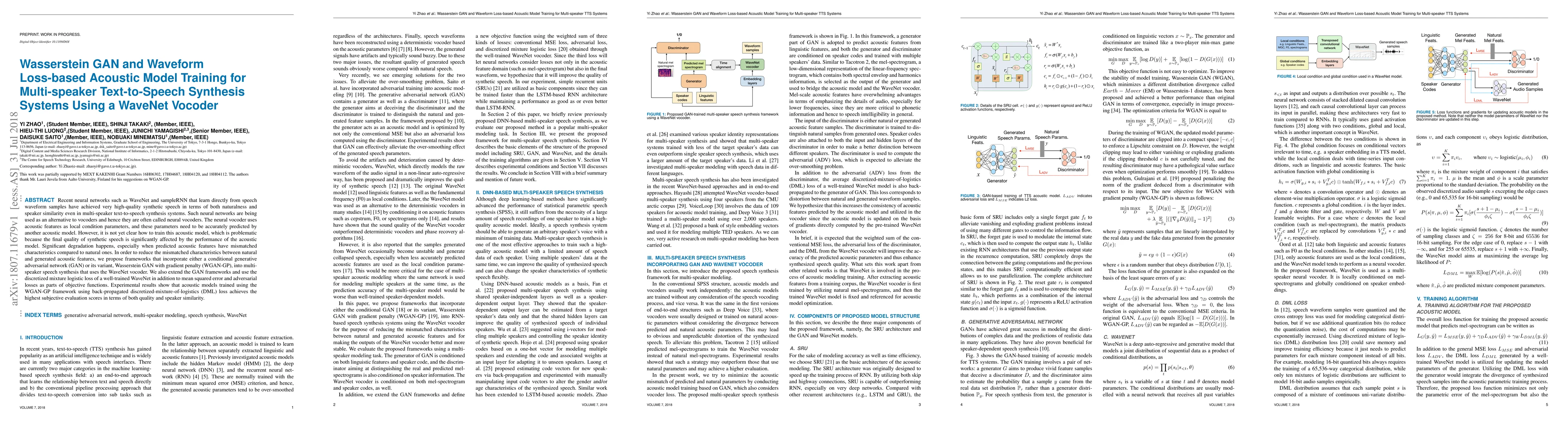This paper proposes frameworks incorporating Wasserstein GAN with gradient penalty (WGAN-GP) and a discretized mixture logistic loss to improve the training of acoustic models for multi-speaker text-to-speech systems using a WaveNet vocoder. Experimental results indicate that the WGAN-GP framework with back-propagated discretized-mixture-of-logistics (DML) loss achieves superior quality and speaker similarity in synthetic speech.