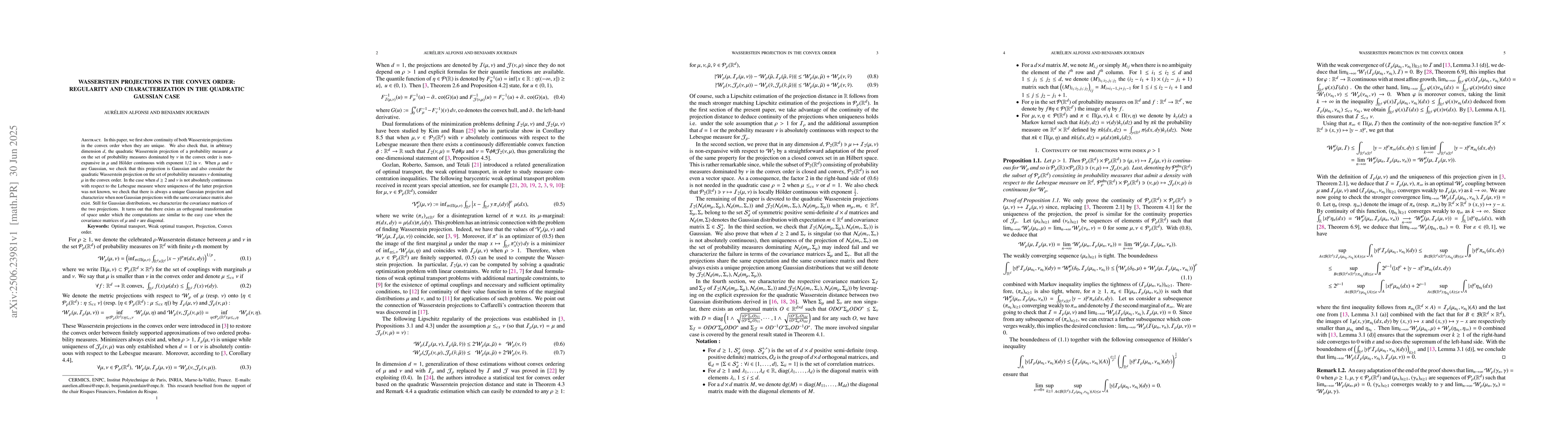 The research employs a combination of theoretical analysis and numerical simulations to study Wasserstein projections in the convex order, particularly focusing on the quadratic Gaussian case.