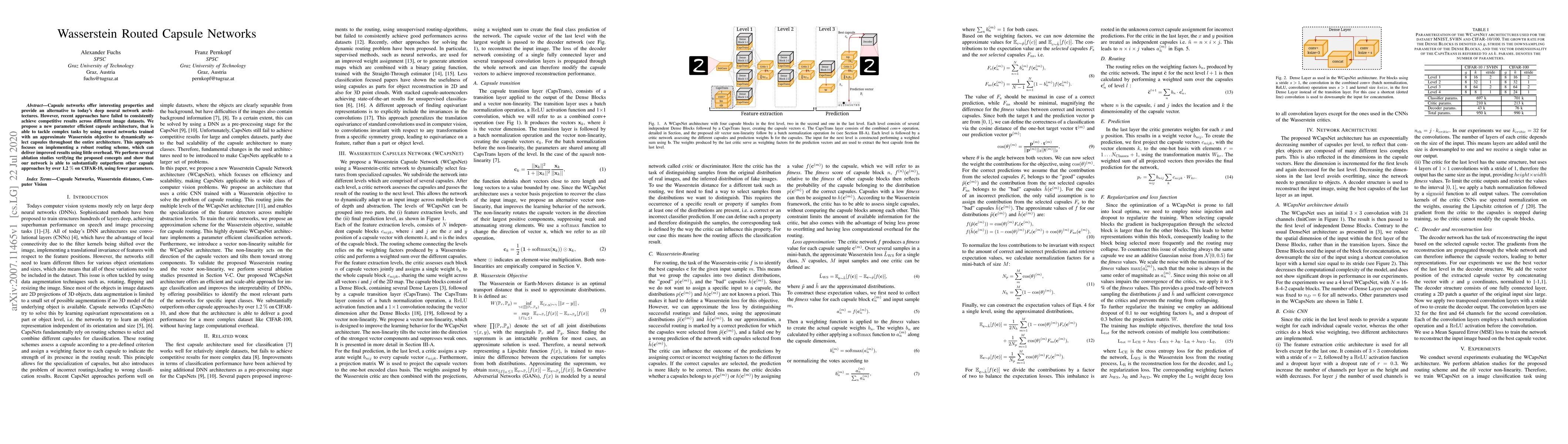 Capsule networks offer interesting properties and provide an alternative to today's deep neural network architectures. However, recent approaches have failed to consistently achieve competitive results across different image datasets. We propose a new parameter efficient capsule architecture, that is able to tackle complex tasks by using neural networks trained with an approximate Wasserstein objective to dynamically select capsules throughout the entire architecture. This approach focuses on implementing a robust routing scheme, which can deliver improved results using little overhead. We perform several ablation studies verifying the proposed concepts and show that our network is able to substantially outperform other capsule approaches by over 1.2 % on CIFAR-10, using fewer parameters.