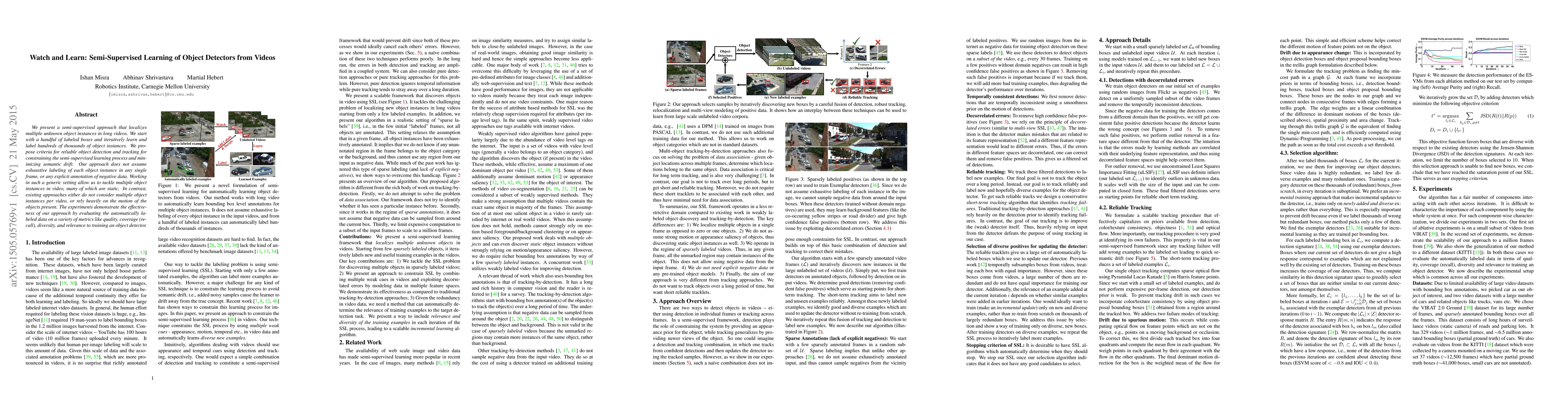 We present a semi-supervised approach that localizes multiple unknown object instances in long videos. We start with a handful of labeled boxes and iteratively learn and label hundreds of thousands of object instances. We propose criteria for reliable object detection and tracking for constraining the semi-supervised learning process and minimizing semantic drift. Our approach does not assume exhaustive labeling of each object instance in any single frame, or any explicit annotation of negative data. Working in such a generic setting allow us to tackle multiple object instances in video, many of which are static. In contrast, existing approaches either do not consider multiple object instances per video, or rely heavily on the motion of the objects present. The experiments demonstrate the effectiveness of our approach by evaluating the automatically labeled data on a variety of metrics like quality, coverage (recall), diversity, and relevance to training an object detector.