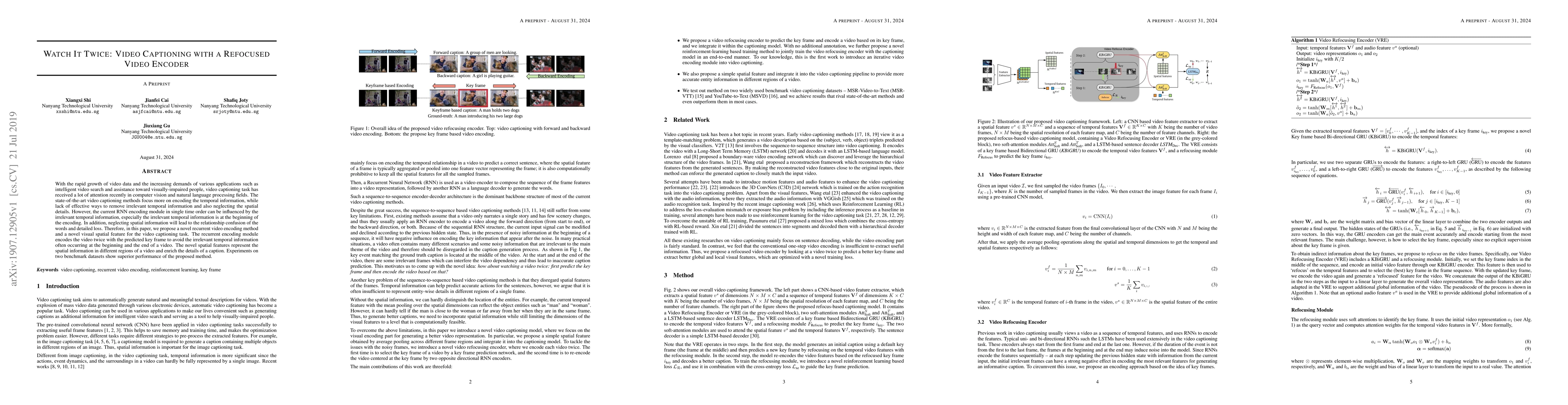 This paper proposes a novel recurrent video encoding method to enhance video captioning by encoding the video twice with a predicted key frame to avoid irrelevant temporal information and enrich spatial details. The method demonstrates superior performance on benchmark datasets.