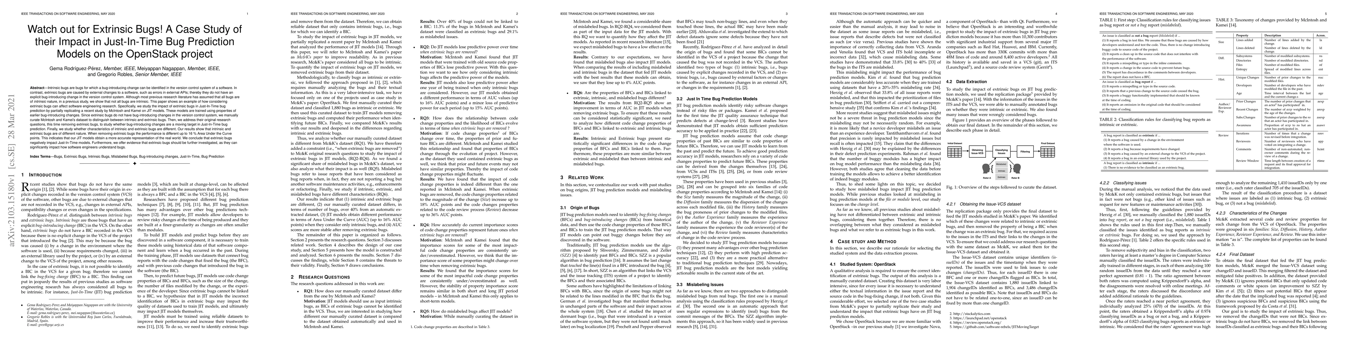 This paper investigates the impact of extrinsic bugs—errors caused by external changes, not evident in the version control system—on Just-In-Time bug prediction models in the OpenStack project. By curating a dataset to distinguish between intrinsic and extrinsic bugs, the study finds that excluding extrinsic bugs improves model performance by up to 16%, indicating their negative influence on prediction accuracy.