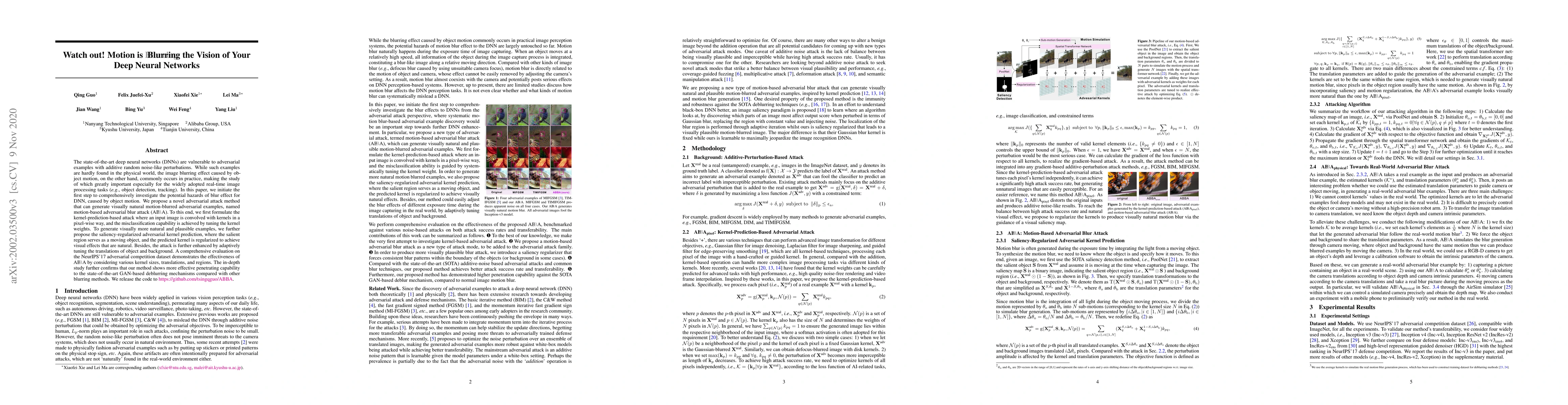 This research introduces a novel adversarial attack method, motion-based adversarial blur attack (ABBA), that generates visually natural motion-blurred adversarial examples, posing a threat to deep neural networks (DNNs) in real-time image processing tasks. ABBA outperforms other blurring methods and GAN-based deblurring mechanisms, as demonstrated through comprehensive evaluations on the NeurIPS'17 adversarial competition dataset.