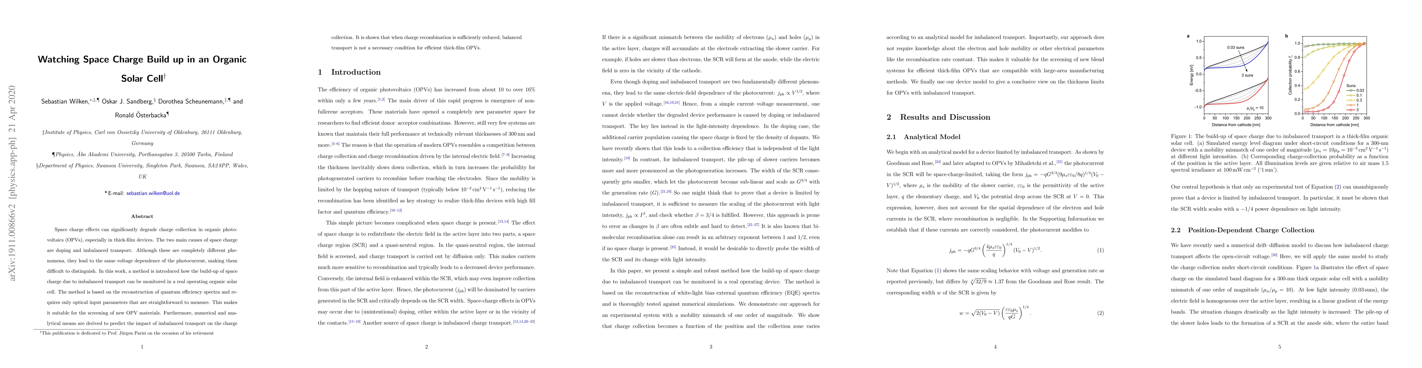 Space charge effects can significantly degrade charge collection in organic photovoltaics (OPVs), especially in thick-film devices. The two main causes of space charge are doping and imbalanced transport. Although these are completely different phenomena, they lead to the same voltage dependence of the photocurrent, making them difficult to distinguish. In this work, a method is introduced how the build-up of space charge due to imbalanced transport can be monitored in a real operating organic solar cell. The method is based on the reconstruction of quantum efficiency spectra and requires only optical input parameters that are straightforward to measure. This makes it suitable for the screening of new OPV materials. Furthermore, numerical and analytical means are derived to predict the impact of imbalanced transport on the charge collection. It is shown that when charge recombination is sufficiently reduced, balanced transport is not a necessary condition for efficient thick-film OPVs.
