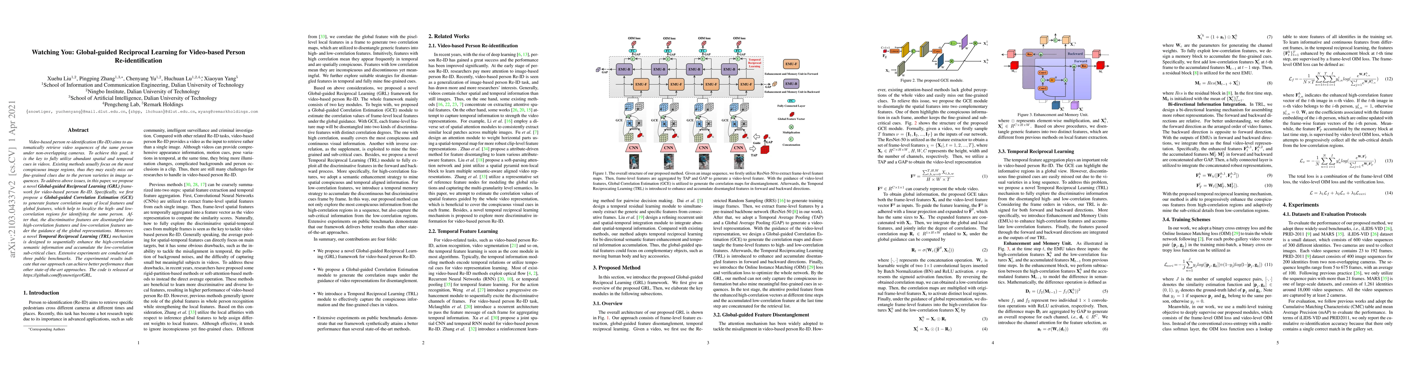 This paper proposes a Global-guided Reciprocal Learning (GRL) framework for video-based person re-identification, utilizing Global-guided Correlation Estimation (GCE) to localize high- and low-correlation regions and a Temporal Reciprocal Learning (TRL) mechanism to enhance feature disentanglement and temporal information. Experimental results show superior performance compared to state-of-the-art methods.