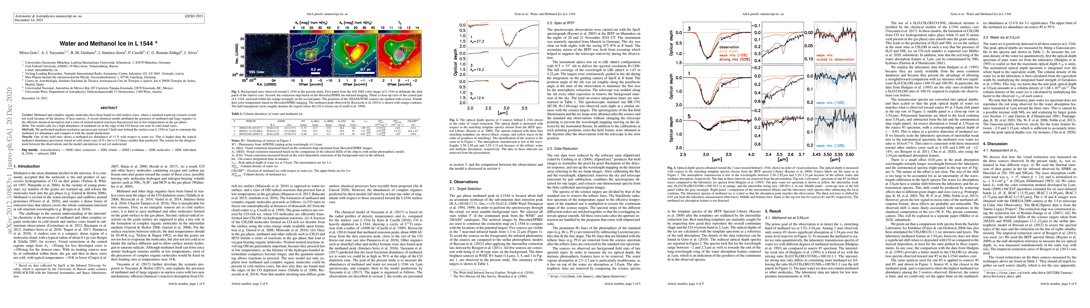 The study investigates methanol ice abundance in the starless core L1544 using mid-infrared spectroscopy, finding a methanol-to-water ice ratio of 11%, which is higher than typical but significantly lower than model predictions, highlighting an unresolved discrepancy.