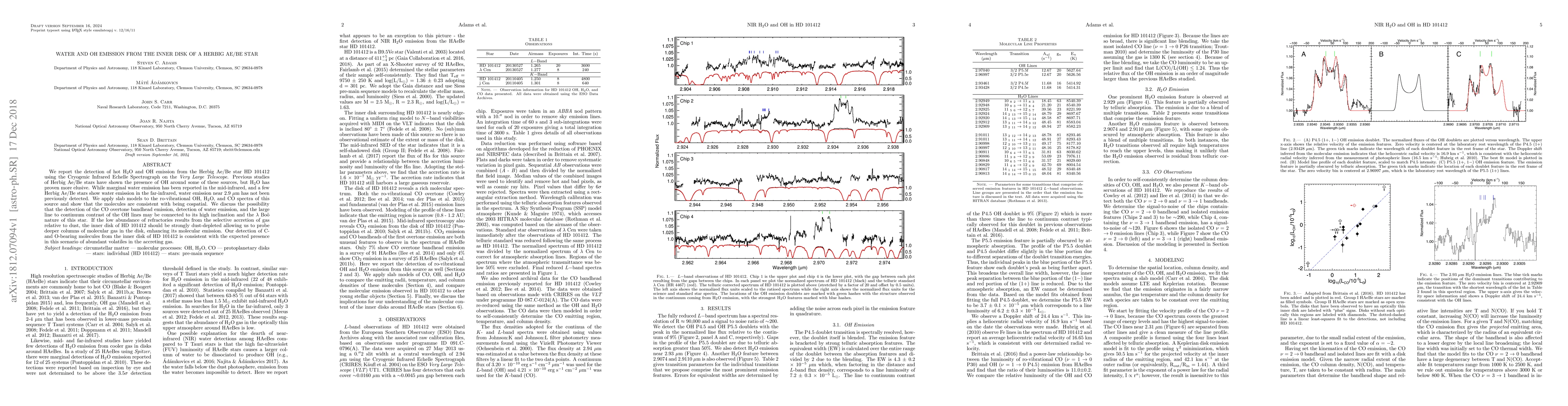 We report the detection of hot H$_{2}$O and OH emission from the Herbig Ae/Be star HD$~101412$ using the Cryogenic Infrared Echelle Spectrograph on the $\textit{Very Large Telescope}$. Previous studies of Herbig Ae/Be stars have shown the presence of OH around some of these sources, but H$_{2}$O has proven more elusive. While marginal water emission has been reported in the mid-infrared, and a few Herbig Ae/Be stars show water emission in the far-infrared, water emission near 2.9 $\mu$m has not been previously detected. We apply slab models to the ro-vibrational OH, H$_{2}$O, and CO spectra of this source and show that the molecules are consistent with being cospatial. We discuss the possibility that the detection of the CO overtone bandhead emission, detection of water emission, and the large line to continuum contrast of the OH lines may be connected to its high inclination and the $\lambda$ Bo\"o nature of this star. If the low abundance of refractories results from the selective accretion of gas relative to dust, the inner disk of HD$~101412$ should be strongly dust-depleted allowing us to probe deeper columns of molecular gas in the disk, enhancing its molecular emission. Our detection of C- and O-bearing molecules from the inner disk of HD$~101412$ is consistent with the expected presence in this scenario of abundant volatiles in the accreting gas.