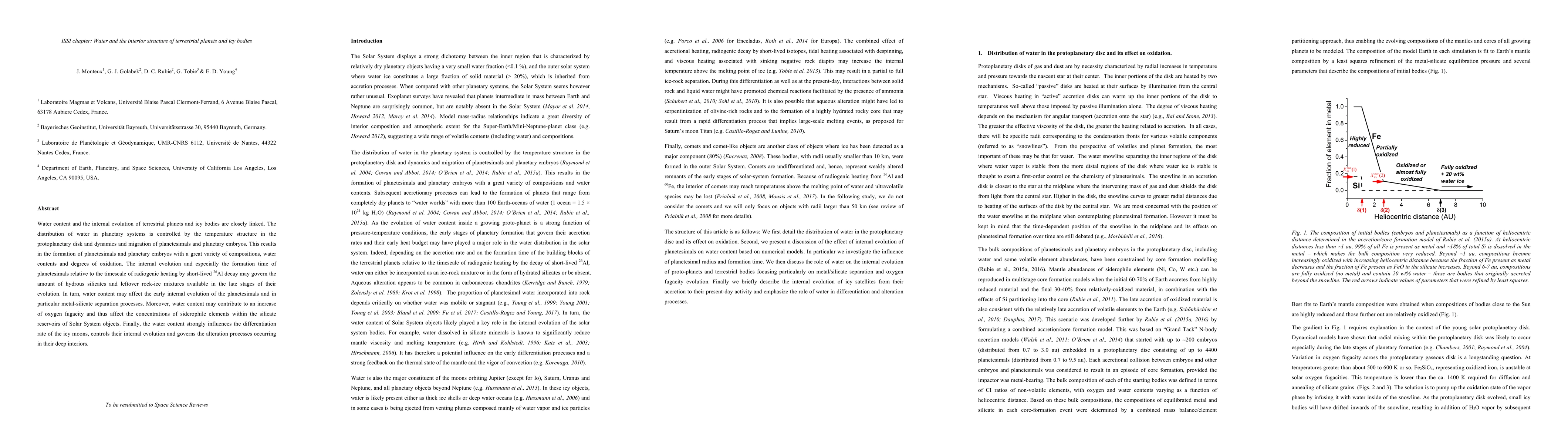 This paper explores the relationship between water content and the internal structure and evolution of terrestrial planets and icy bodies, emphasizing how water distribution and composition influence planetary differentiation, metal-silicate separation, and the formation of hydrous silicates. The study highlights the significant role of water in the early internal evolution and alteration processes of these celestial bodies.