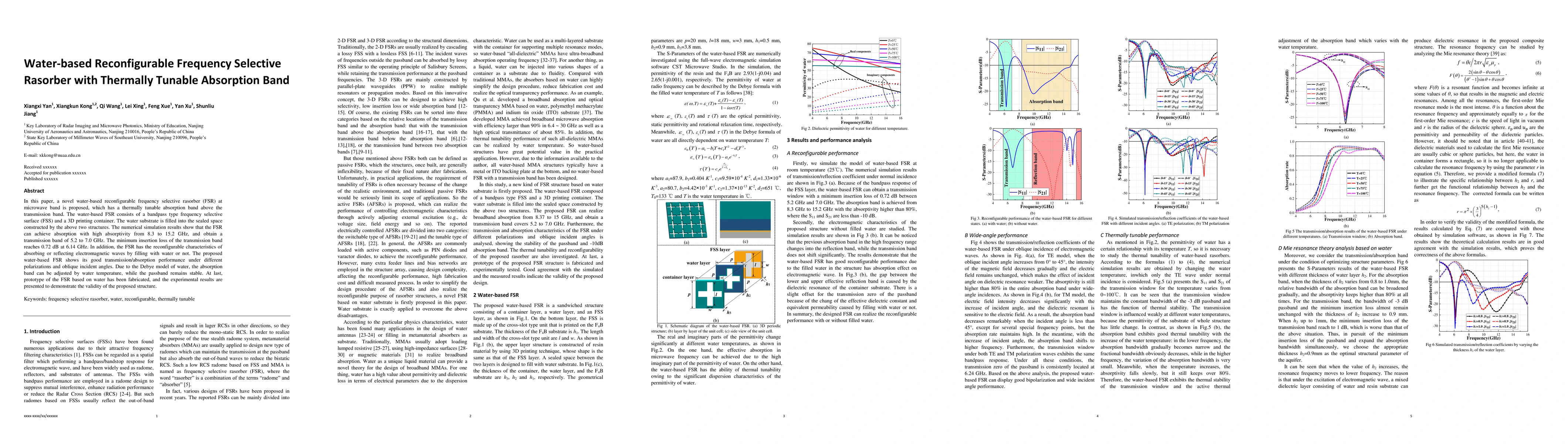 In this paper, a novel water-based reconfigurable frequency selective rasorber (FSR) at microwave band is proposed, which has a thermally tunable absorption band above the transmission band. The water-based FSR consists of a bandpass type frequency selective surface (FSS) and a 3D printing container. The water substrate is filled into the sealed space constructed by the above two structures. The numerical simulation results show that the FSR can achieve absorption with high absorptivity from 8.3 to 15.2 GHz, and obtain a transmission band of 5.2 to 7.0 GHz. The minimum insertion loss of the transmission band reaches 0.72 dB at 6.14 GHz. In addition, the FSR has the reconfigurable characteristics of absorbing or reflecting electromagnetic waves by filling with water or not. The proposed water-based FSR shows its good transmission/absorption performance under different polarizations and oblique incident angles. Due to the Debye model of water, the absorption band can be adjusted by water temperature, while the passband remains stable. At last, prototype of the FSR based on water has been fabricated, and the experimental results are presented to demonstrate the validity of the proposed structure.