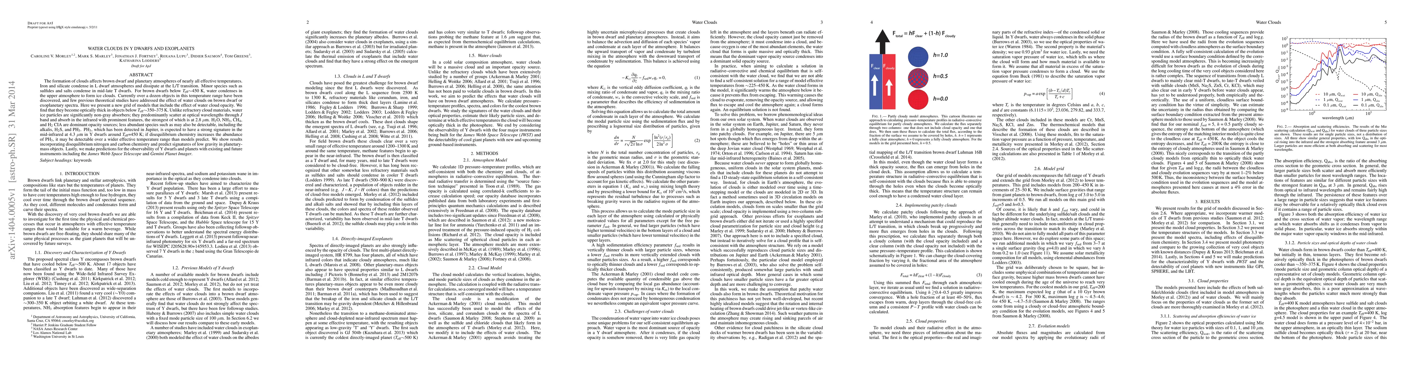 The study presents a new grid of models that incorporate the effect of water cloud opacity for Y dwarfs and exoplanets, utilizing updated molecular opacity databases and considering radiative-convective equilibrium.