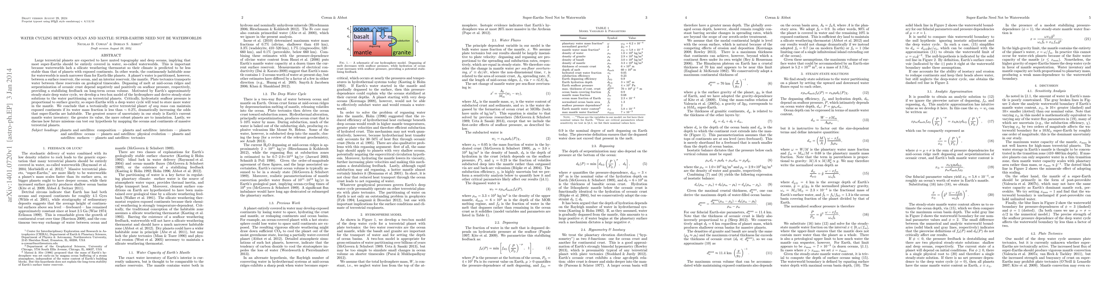 This paper argues that super-Earths do not necessarily need to be waterworlds due to the potential for water cycling between the ocean and mantle facilitated by plate tectonics. The study suggests that if a planet's water mass fraction is below ~0.2%, it can maintain exposed continents, enhancing its habitability.