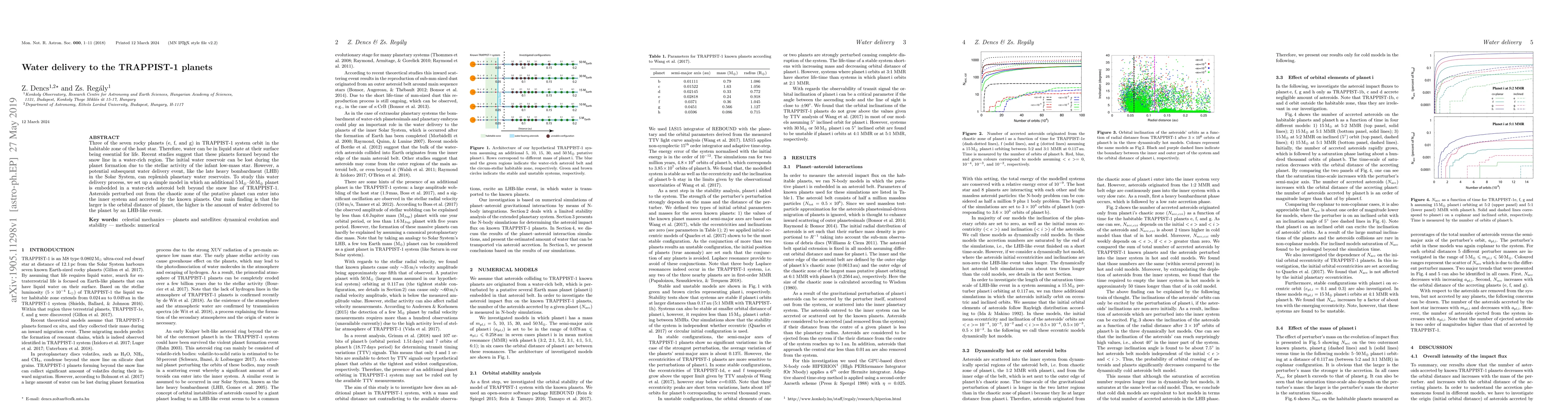 This research investigates potential water delivery to the TRAPPIST-1 planets e, f, and g through a late heavy bombardment-like event, suggesting that planets farther from the star receive more water from perturbed asteroids. The study models a water-rich asteroid belt beyond the snow line to simulate this process.