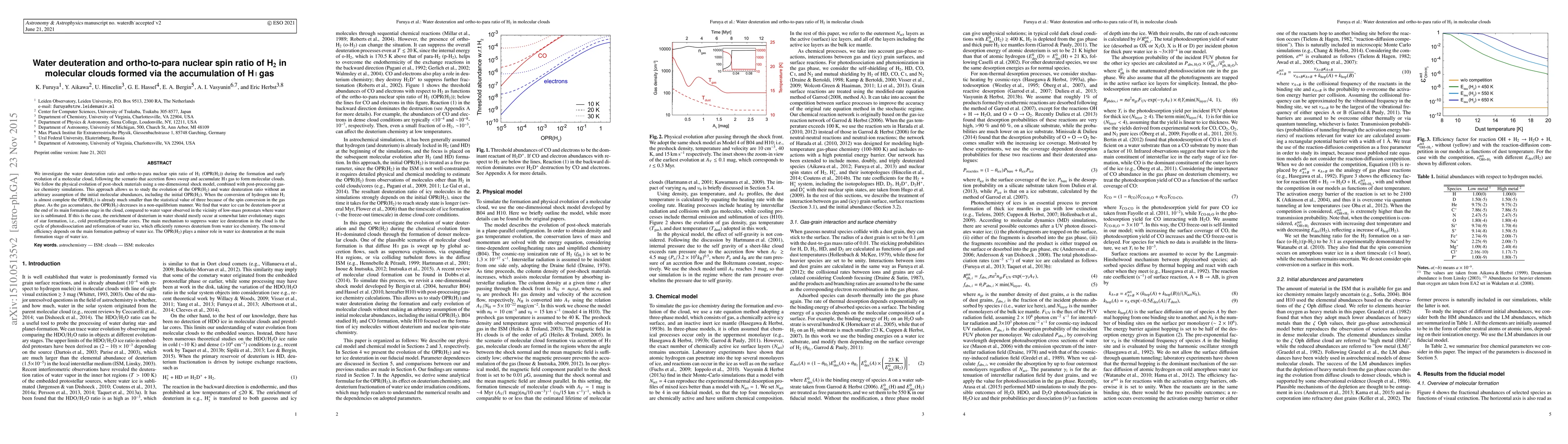 This paper examines the water deuteration ratio and ortho-to-para nuclear spin ratio of H2 (OPR(H2)) during molecular cloud formation, finding that OPR(H2) decreases non-equilibrium due to spin conversion. It concludes that water ice deuteration is suppressed mainly by photodissociation, with OPR(H2) having a minor impact on water ice deuteration during its main formation stage.